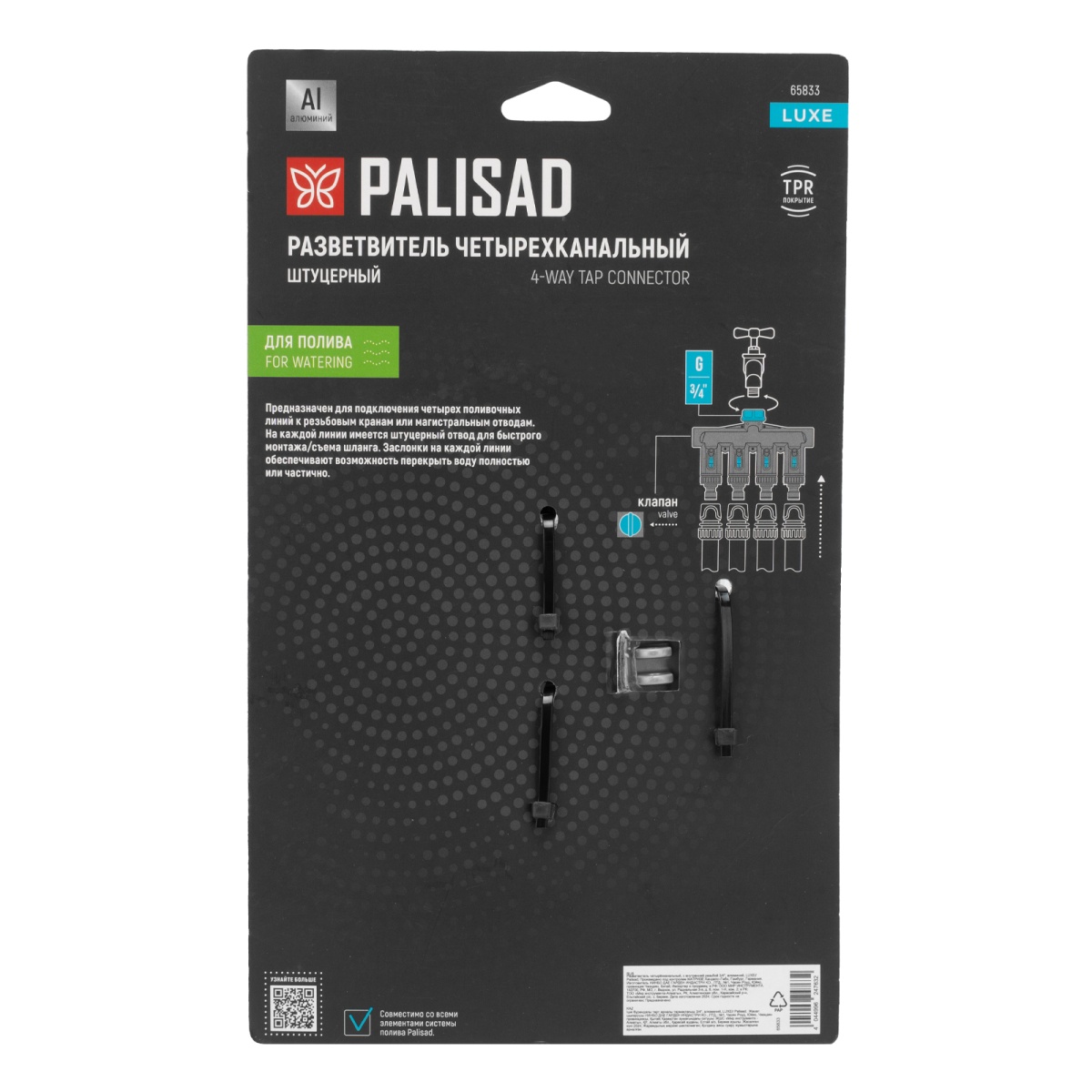 Разветвитель четырехканальный, с внутренней резьбой 3/4", алюминий, LUXE Palisad