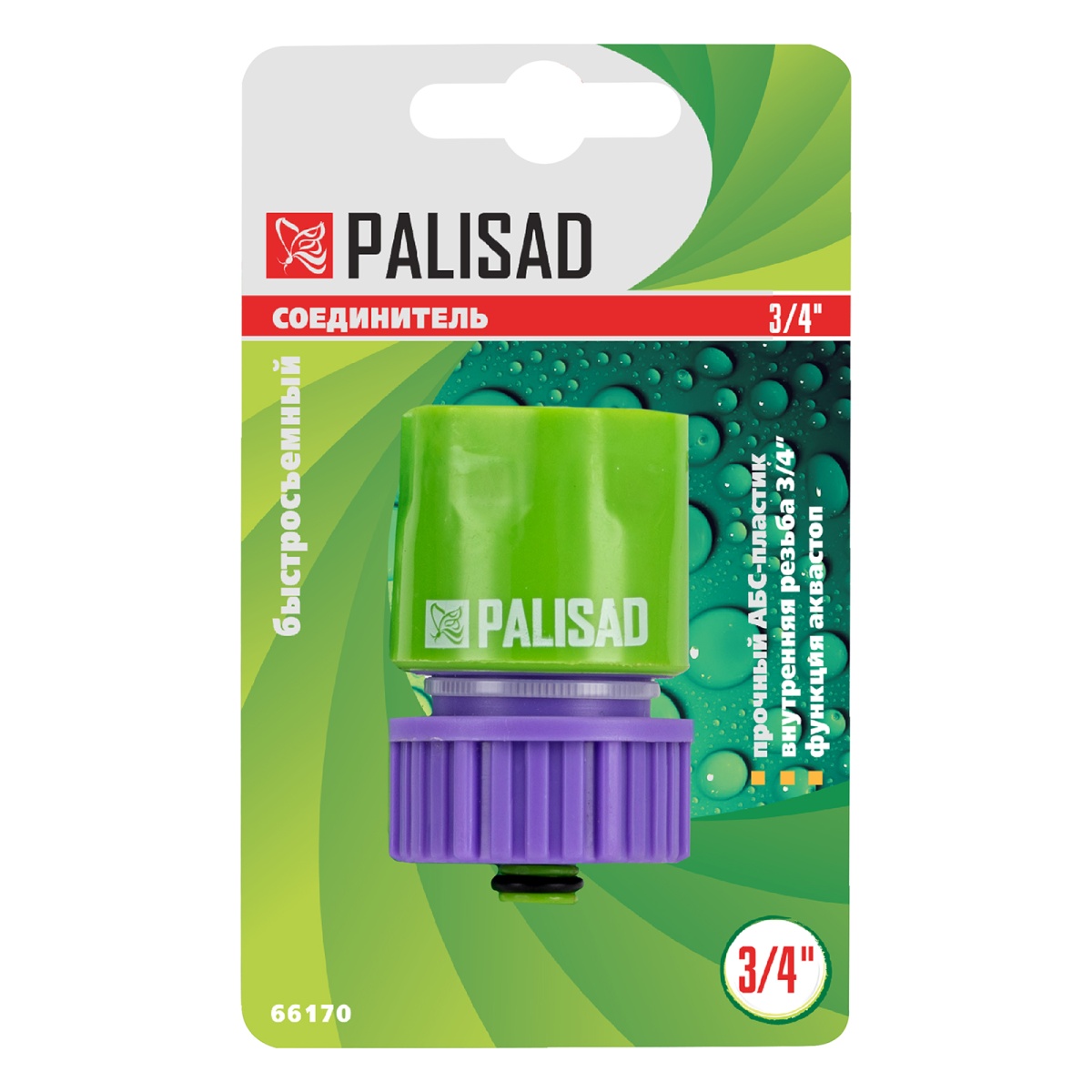 Купить Соединитель пластмассовый, быстросъемный, внутренняя резьба 3/4, аквастоп Palisad V6765 по лучшей цене с доставкой - интернет магазин №1 в России