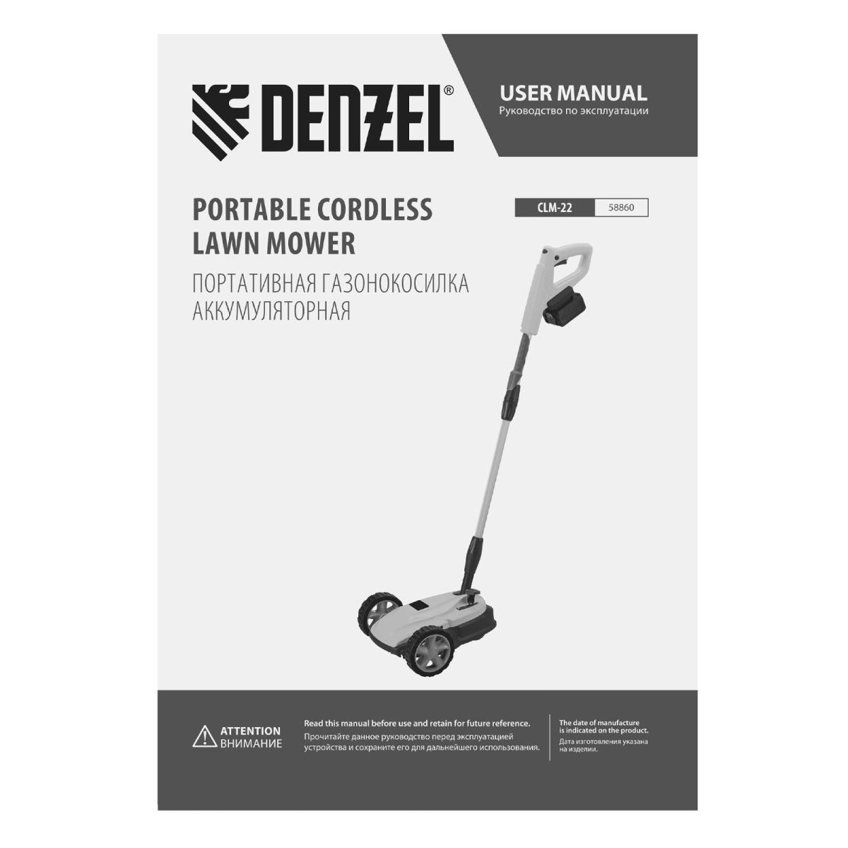 Наличие клапана для сброса давления Портативная аккумуляторная газонокосилка CLM-22, Li-ion, 20В, 220 мм // Denzel