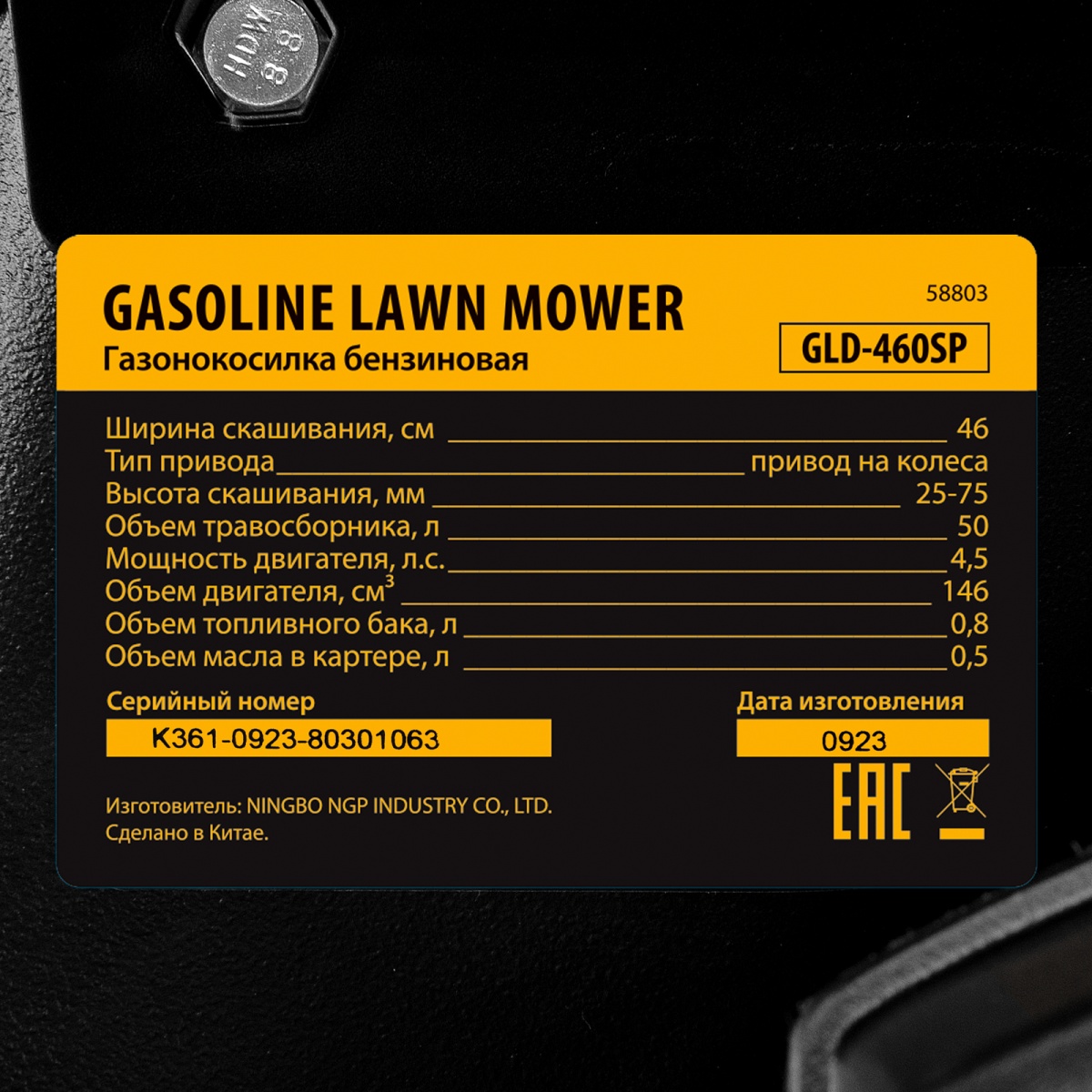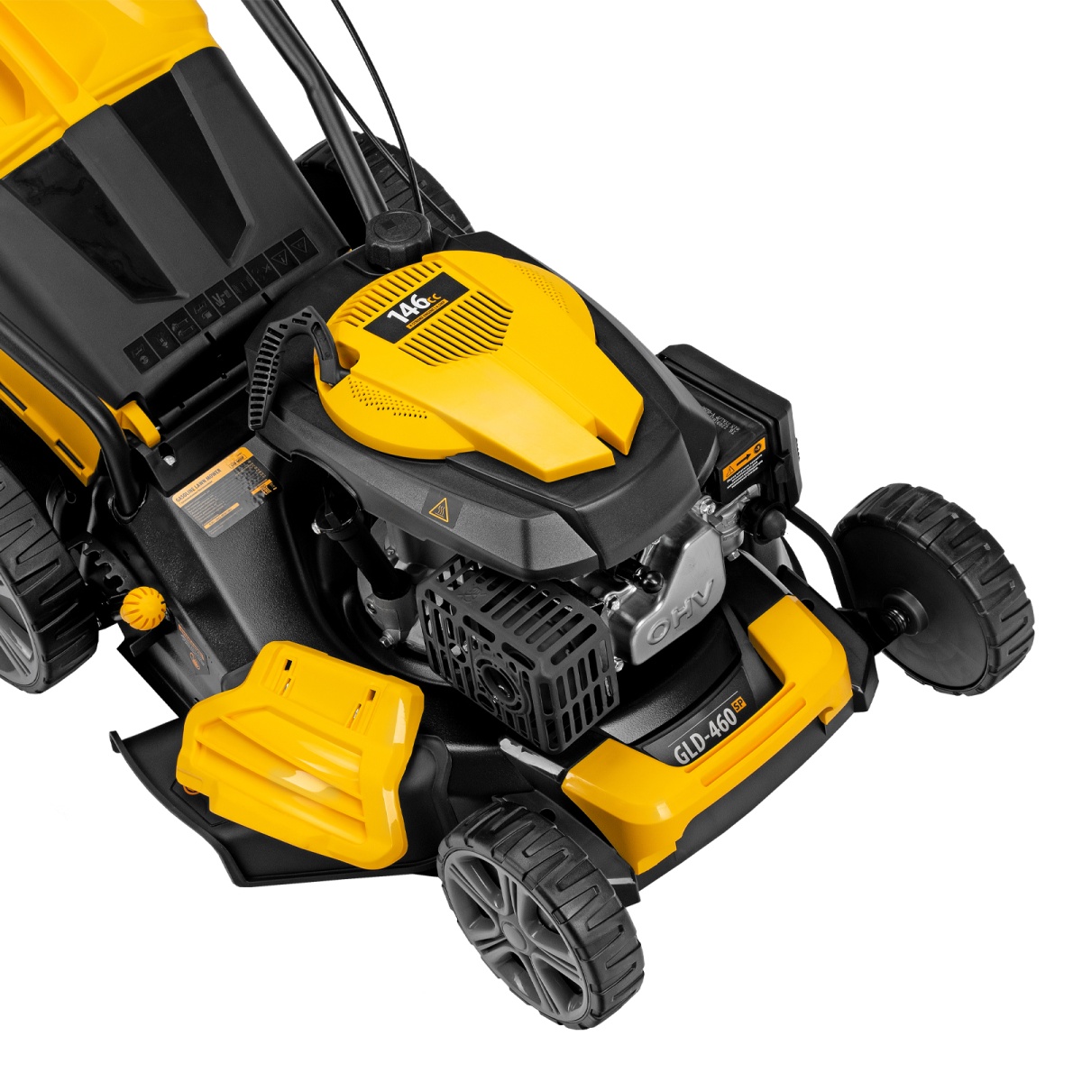 Наличие клапана для сброса давления Газонокосилка бензиновая GLD-460SP, 146 куб.см, ширина 46 см, привод 7 уровней, травосборник 50 л Denzel