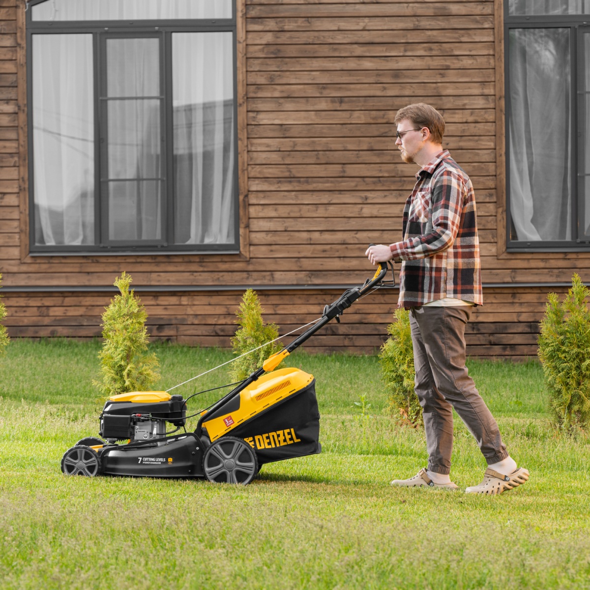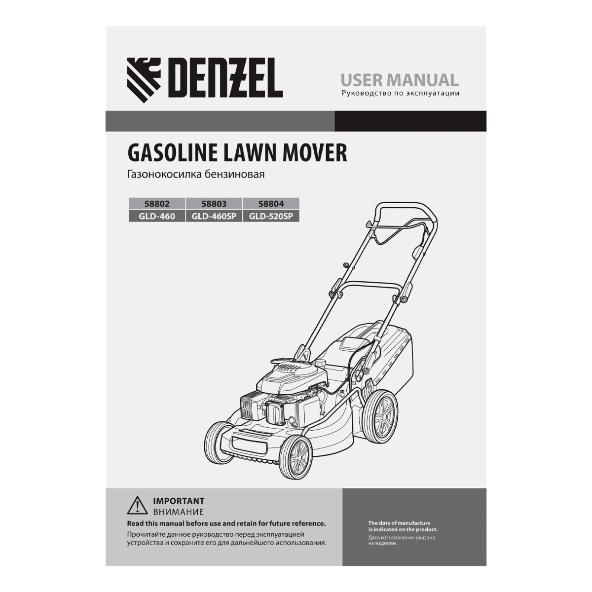 Купить Газонокосилка бензиновая GLD-460SP, 146 куб.см, ширина 46 см, привод 7 уровней, травосборник 50 л Denzel V1278 по лучшей цене с доставкой - интернет магазин №1 в России