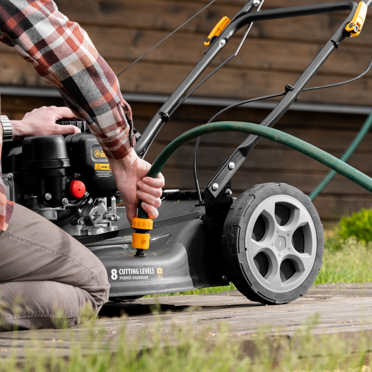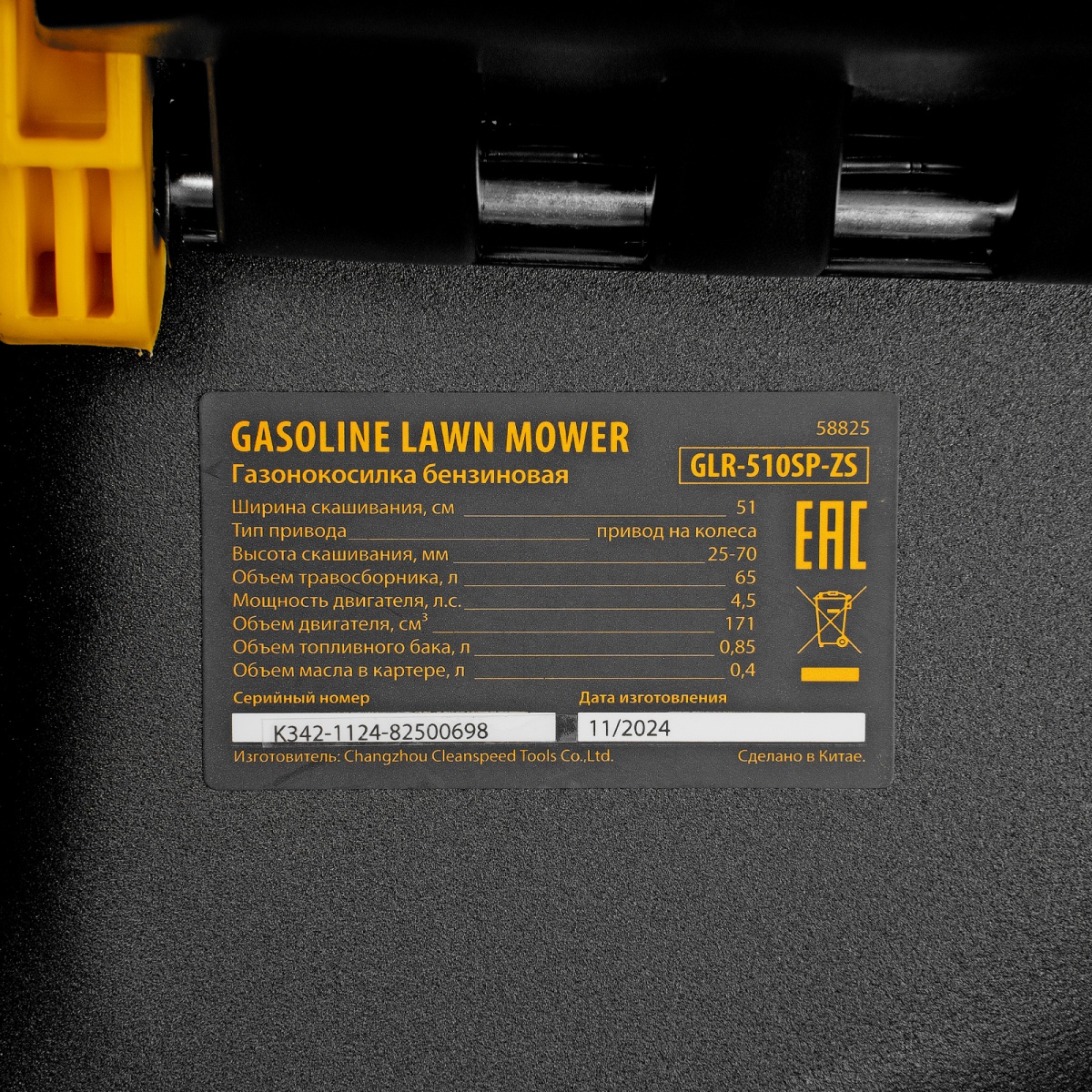 Наличие клапана для сброса давления Газонокосилка бензиновая GLR-510SP-ZS, 171 см3, ширина 51 см, привод, травосборник 65 л Denzel