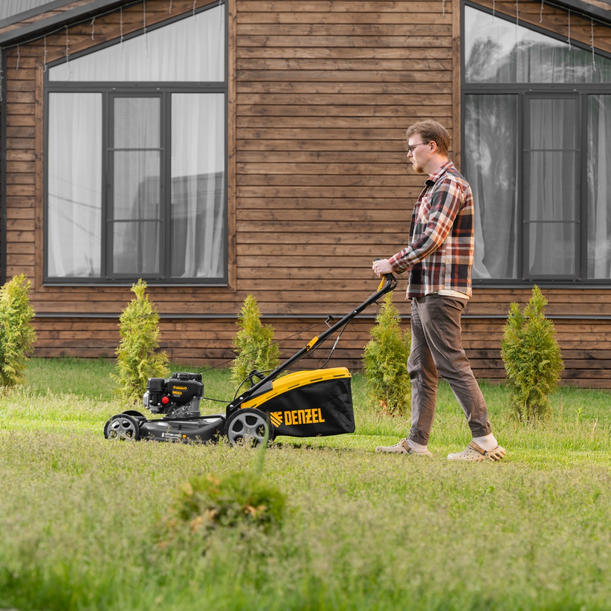 Купить Газонокосилка бензиновая GLR-510SP-ZS, 171 см3, ширина 51 см, привод, травосборник 65 л Denzel V1281 по лучшей цене с доставкой - интернет магазин №1 в России
