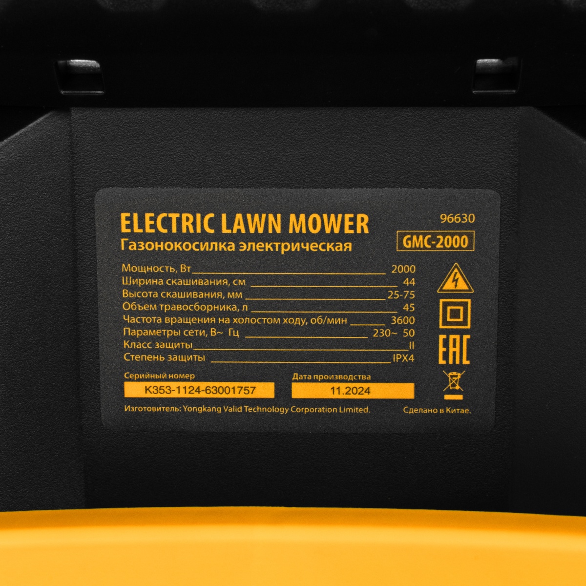 Наличие клапана для сброса давления Газонокосилка электрическая GMC-2000, шир. 44см, 2000 Вт, 6 уров., травосб. 45 л Denzel