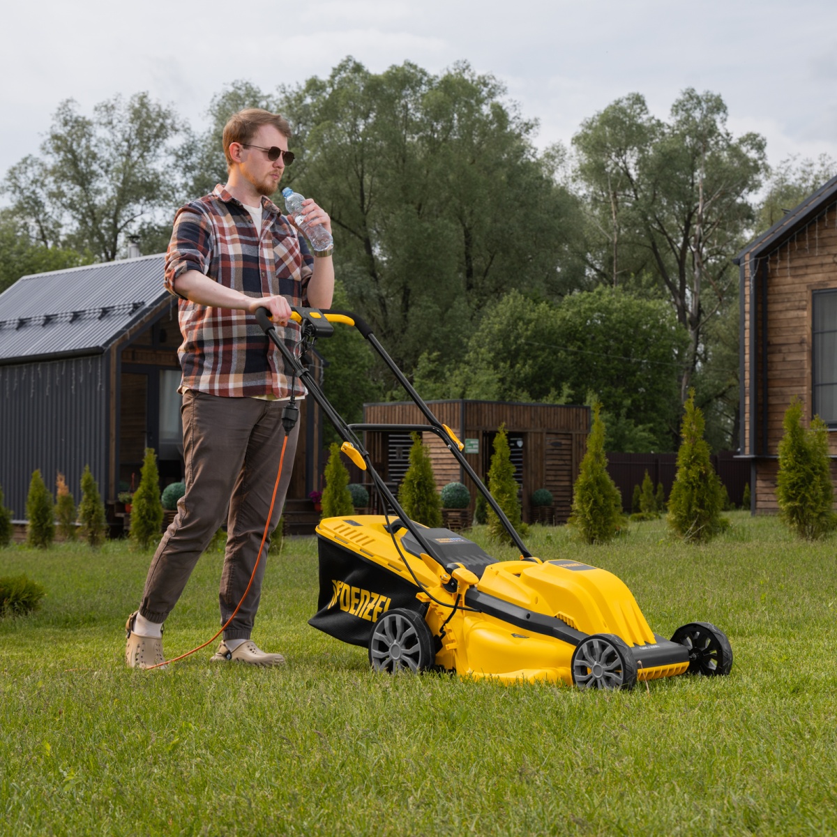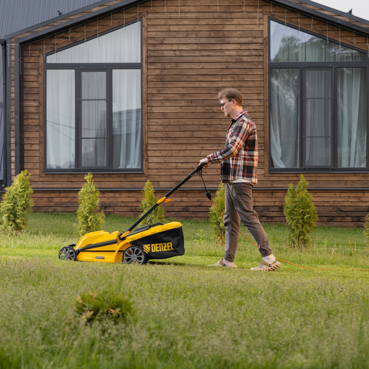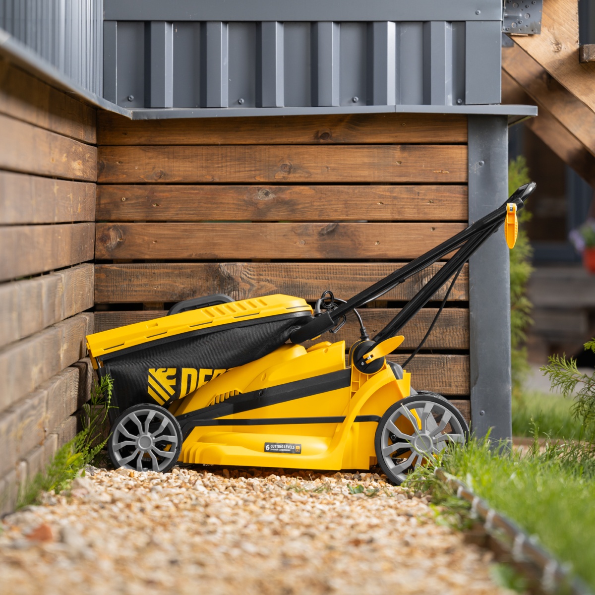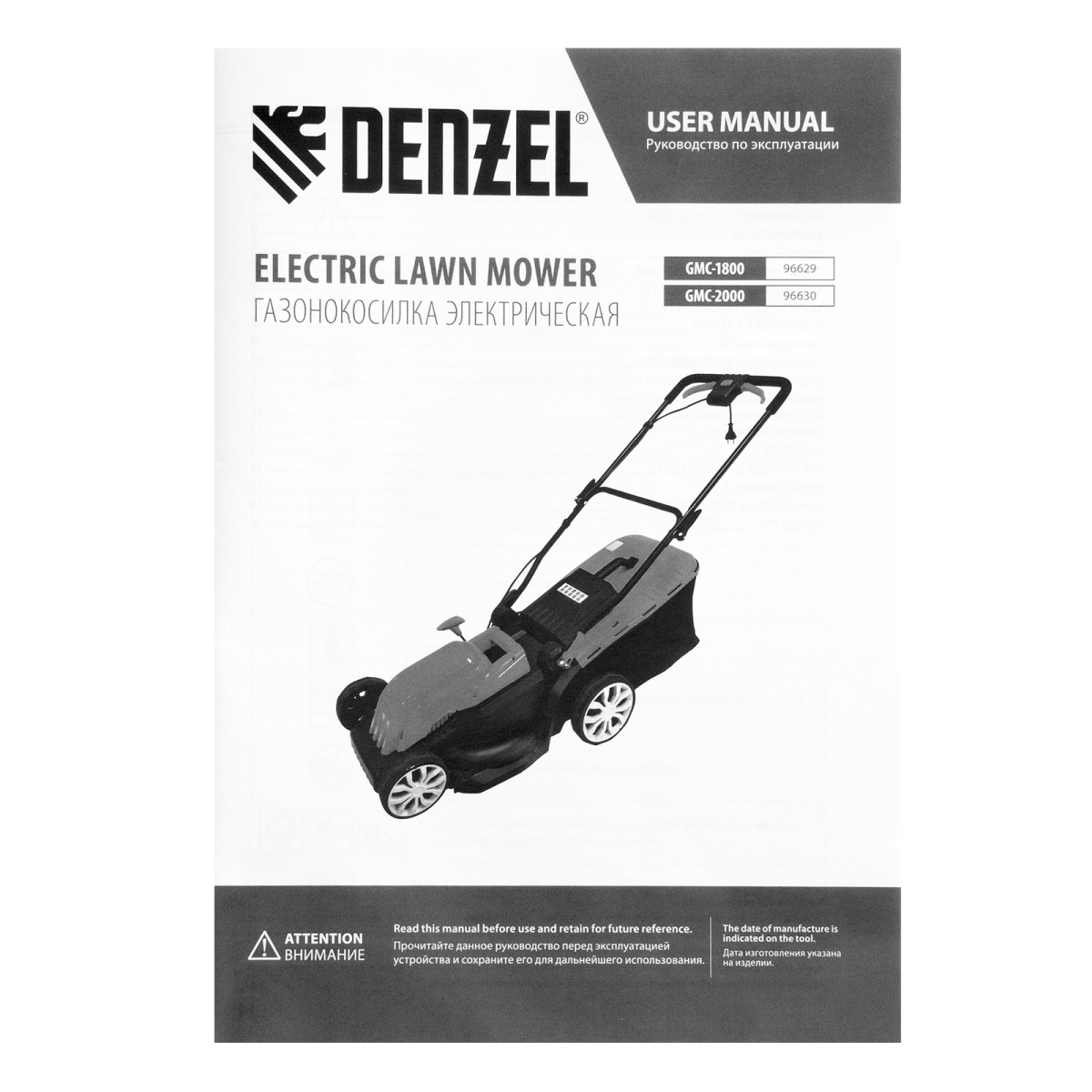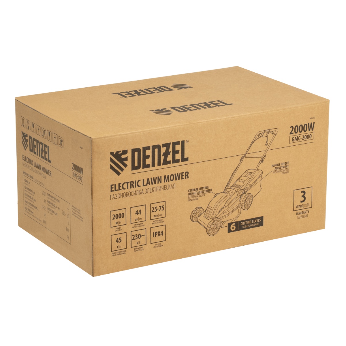 Купить Газонокосилка электрическая GMC-2000, шир. 44см, 2000 Вт, 6 уров., травосб. 45 л Denzel V1285 по лучшей цене с доставкой - интернет магазин №1 в России