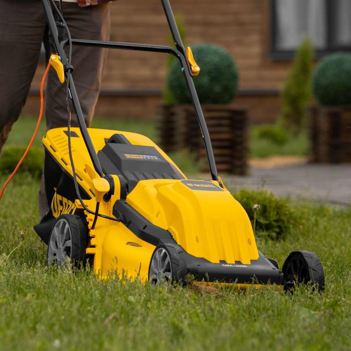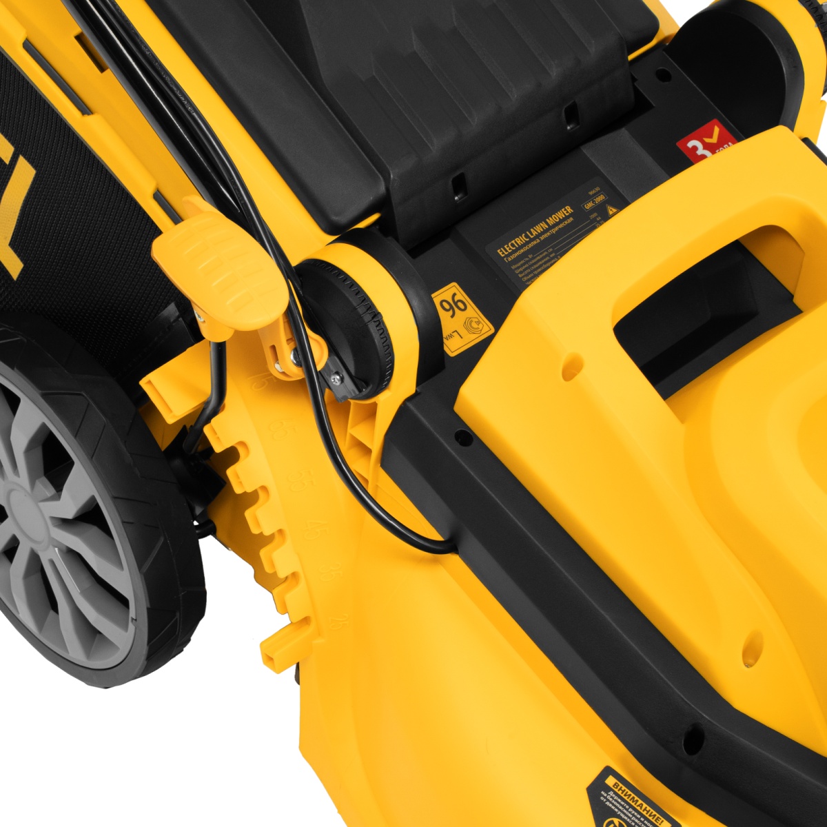 Газонокосилка электрическая GMC-2000, шир. 44см, 2000 Вт, 6 уров., травосб. 45 л Denzel