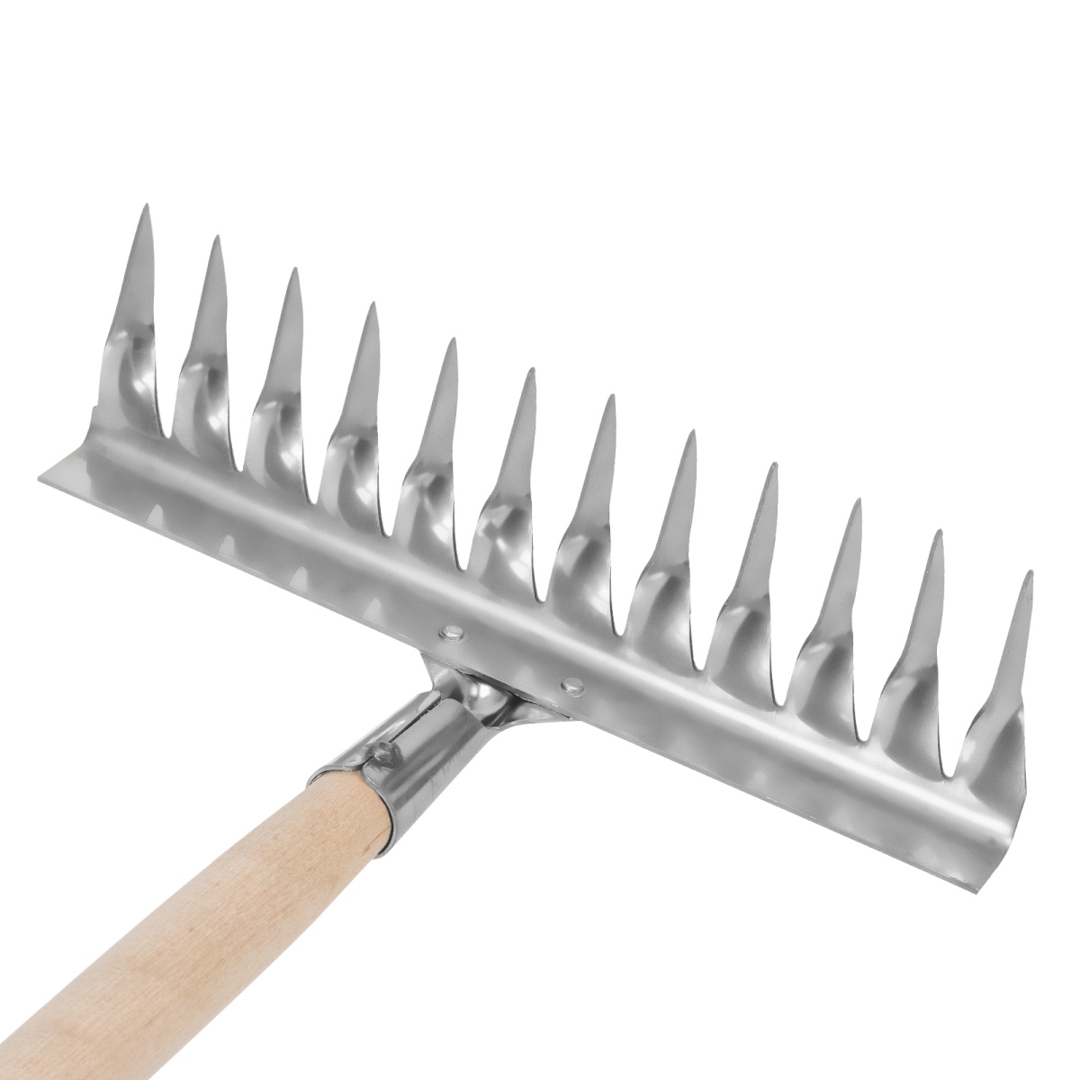 Грабли, нержавеющая сталь, 290 х 1300 мм, 12 витых зубьев, деревянный черенок, Сибртех