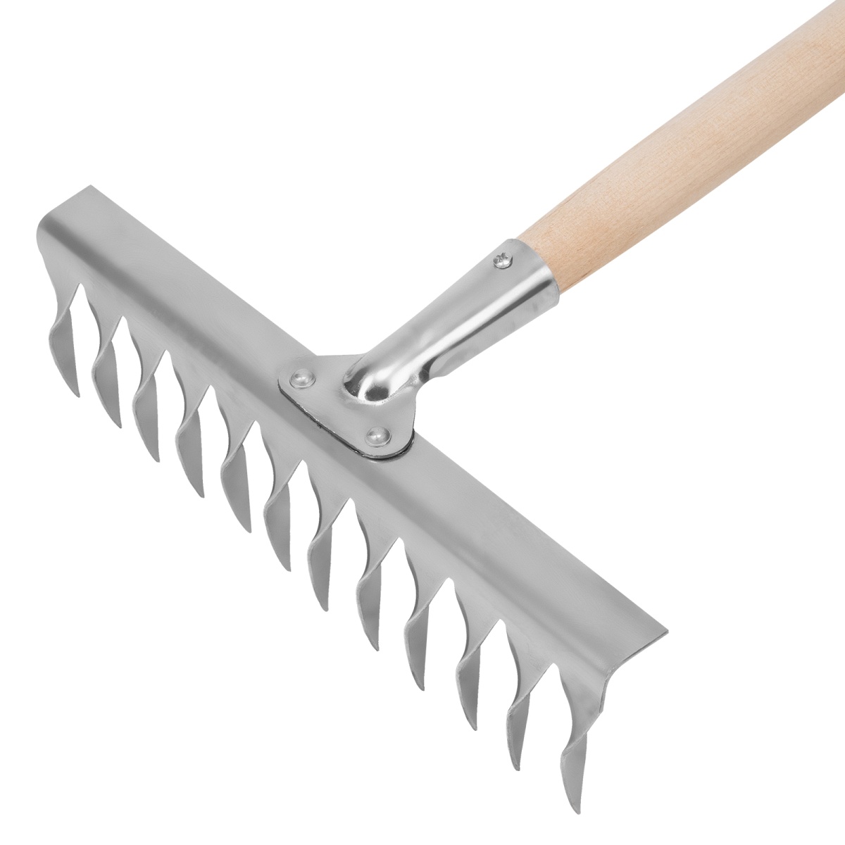 Купить Грабли, нержавеющая сталь, 290 х 1300 мм, 12 витых зубьев, деревянный черенок, Сибртех V1535 по лучшей цене с доставкой - интернет магазин №1 в России