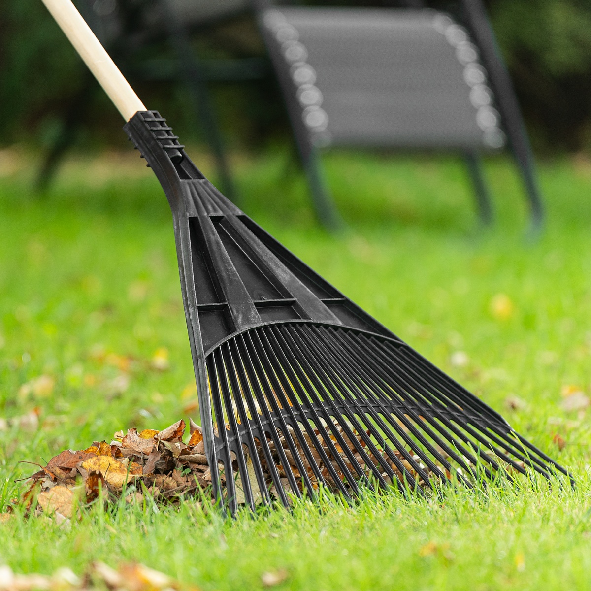 Купить Грабли веерные пластиковые, 600 мм, 24 плоских зуба, без черенка, Сибртех V1513 по лучшей цене с доставкой - интернет магазин №1 в России