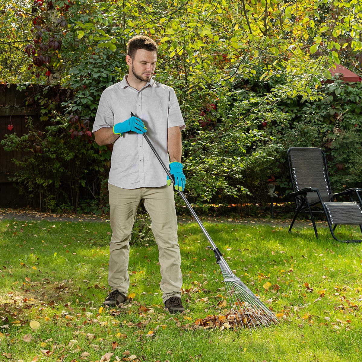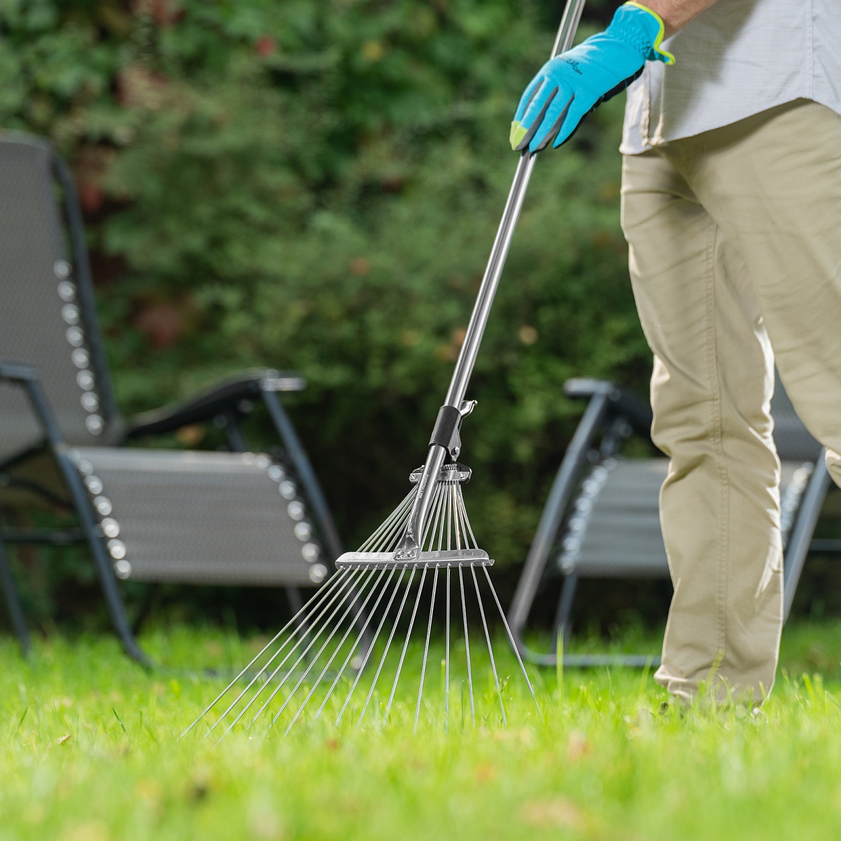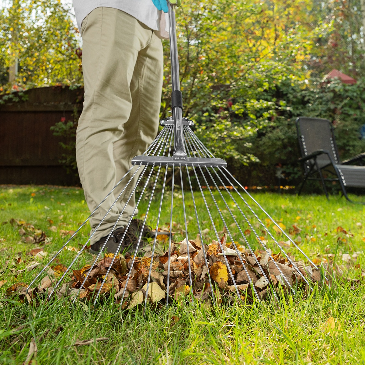 Купить Грабли веерные стальные, 190 - 520 х 1200 - 1500 мм, 15 зубьев, раздвижные, стальной черенок, Palisad V1517 по лучшей цене с доставкой - интернет магазин №1 в России