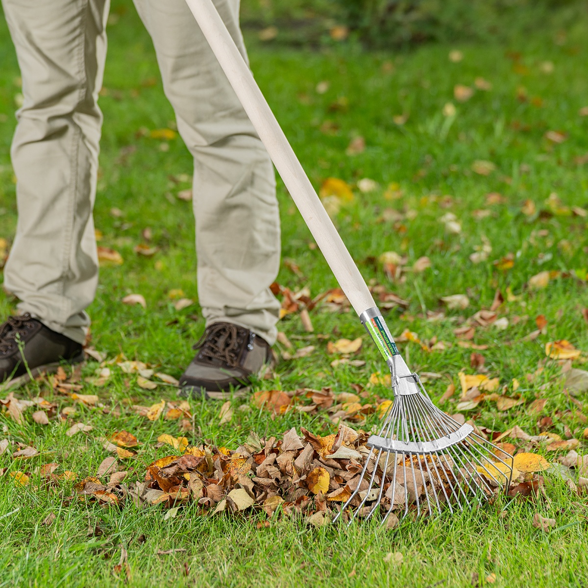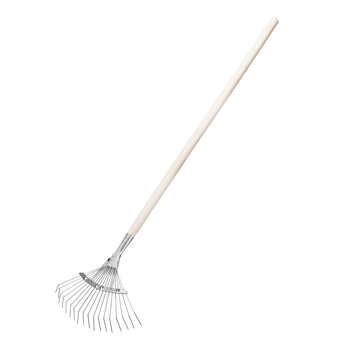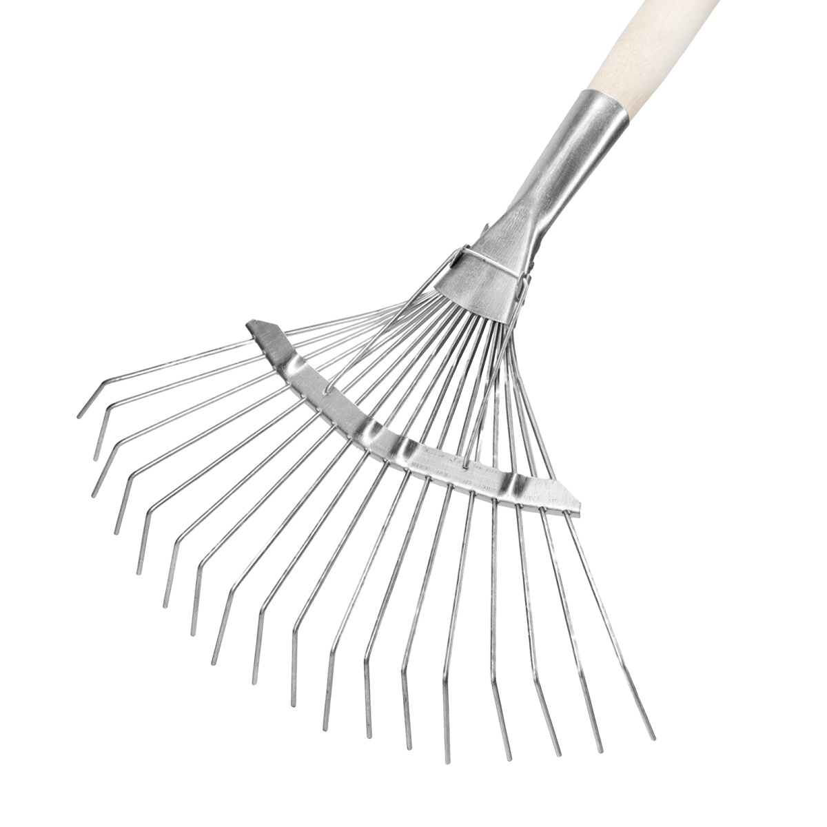 Грабли веерные стальные, 350 х 1450 мм, 18 круглых зубьев, деревянный черенок, Сибртех
