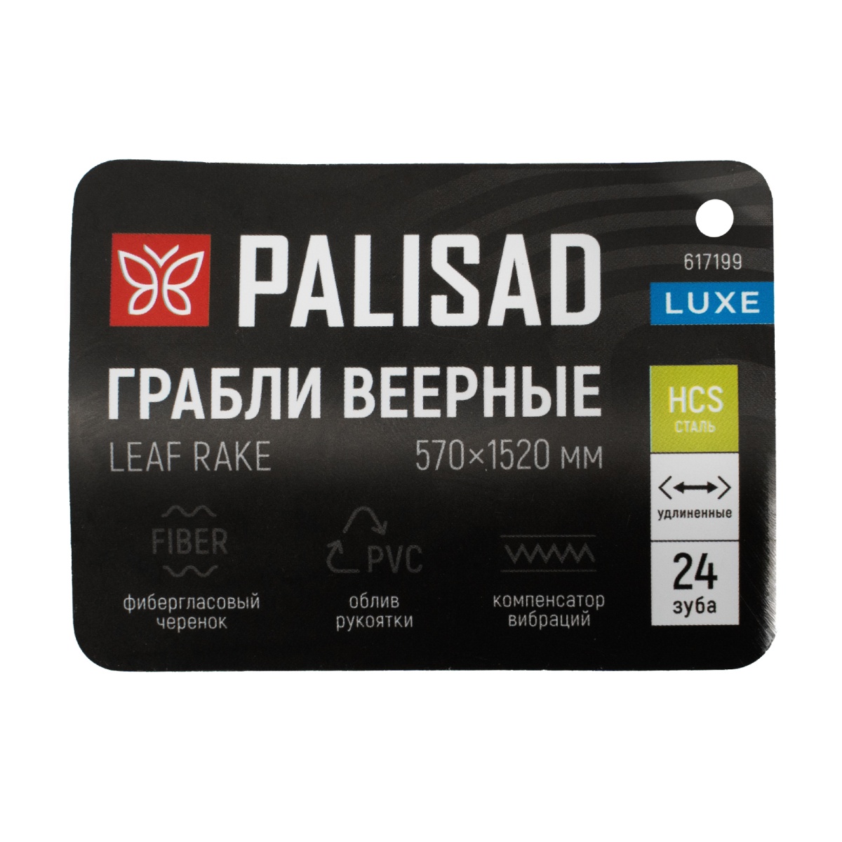 Купить Грабли веерные стальные, 570х1520 мм, 24 зуба, фибергласовый черенок, ПВХ накладка, LUXE// Palisad V1524 по лучшей цене с доставкой - интернет магазин №1 в России