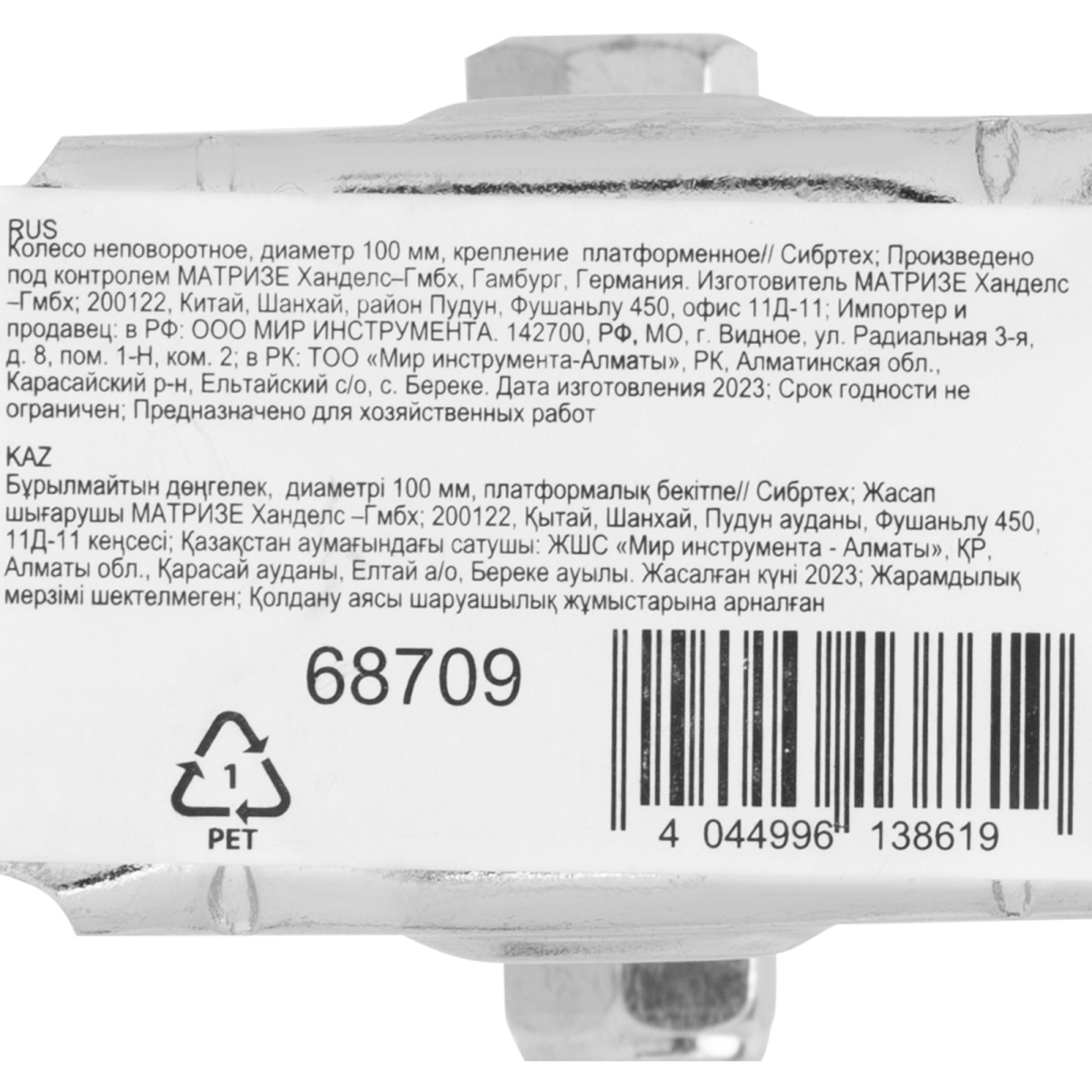 Купить Колесо неповоротное D 100 мм, крепление платформенное Сибртех V2699 по лучшей цене с доставкой - интернет магазин №1 в России