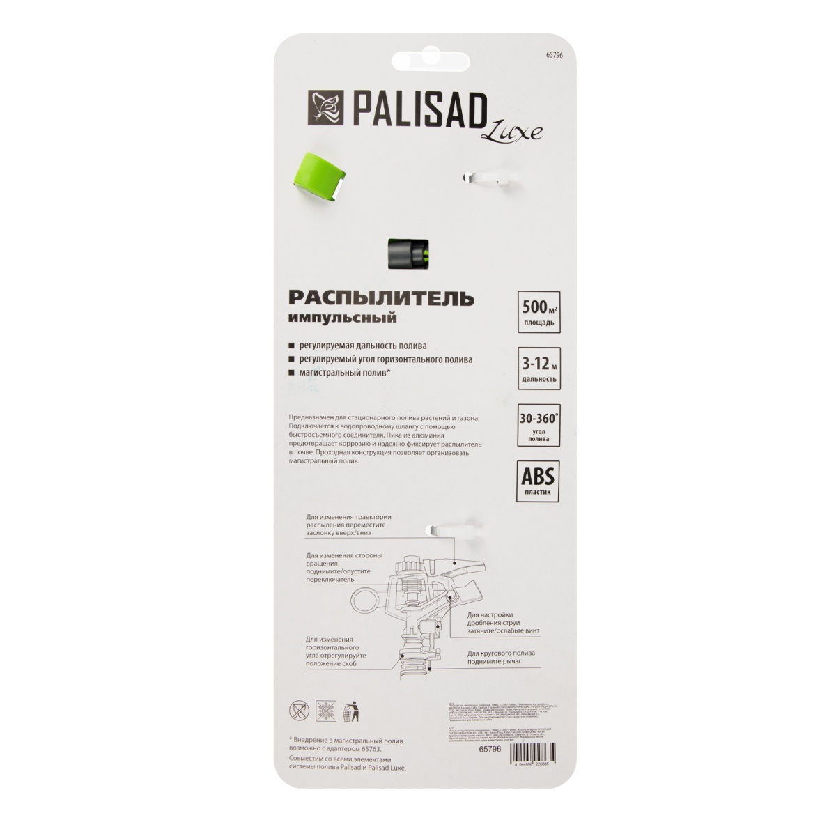 Купить Разбрызгиватель усиленный, импульсный, с регулировкой угла горизонт распыления до 39 м Palisad V5913 по лучшей цене с доставкой - интернет магазин №1 в России