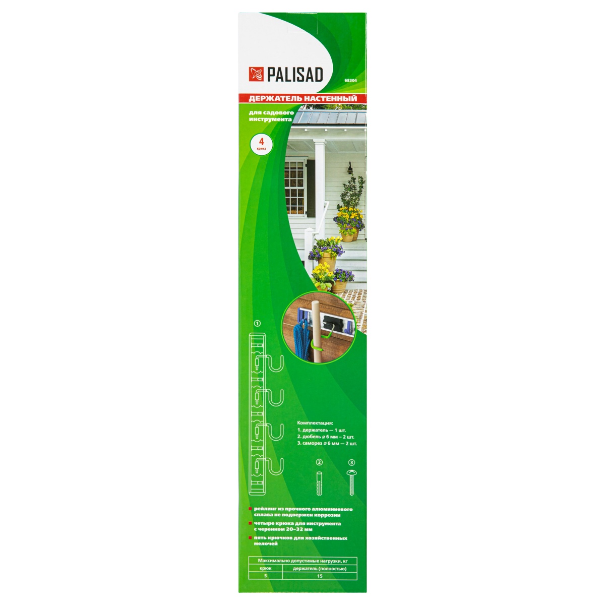 Купить Алюминиевый настенный держатель для садового инструмента, 4 крюка, Palisad V453 по лучшей цене с доставкой - интернет магазин №1 в России
