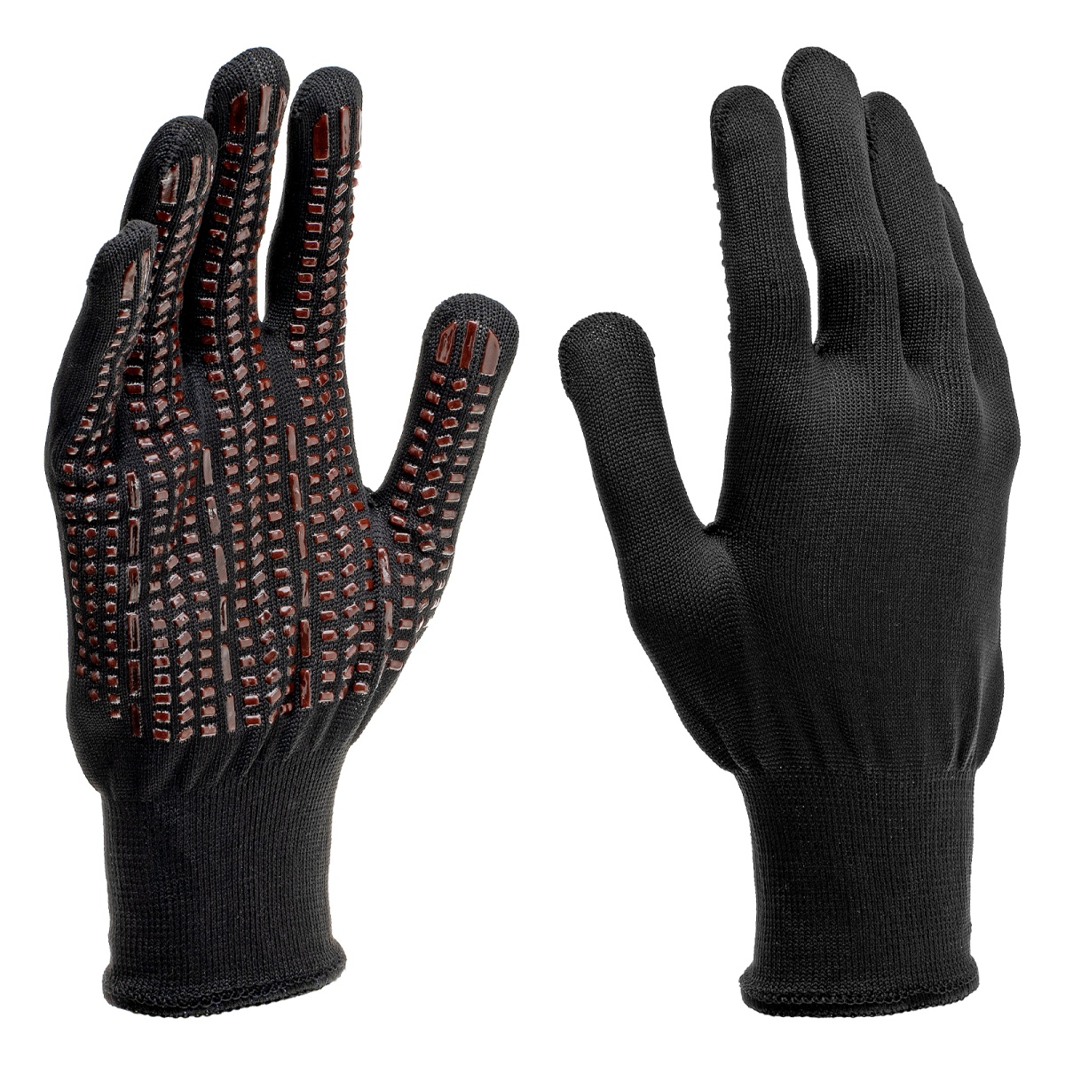 Купить Перчатки трикотажные, синтетическая нить, ПВХ-гель точка, цвет: черный, L, 13 класс Сибртех V5308 по лучшей цене с доставкой - интернет магазин №1 в России