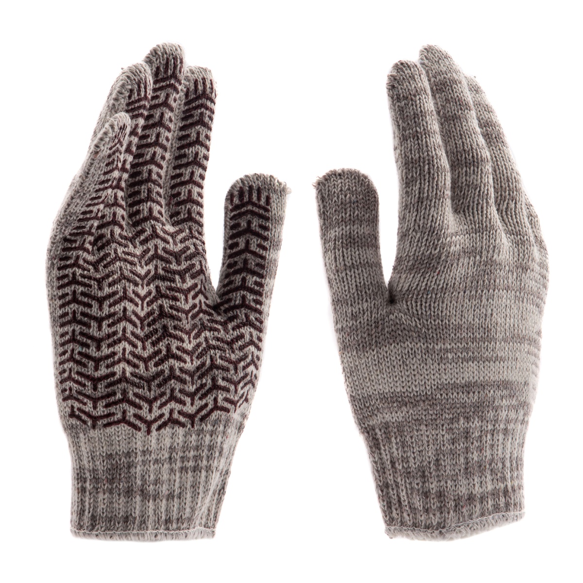 Купить Перчатки трикотажные усиленные, гелевое ПВХ-покрытие, 7 класс, бело-серый меланж Сибртех V5283 по лучшей цене с доставкой - интернет магазин №1 в России