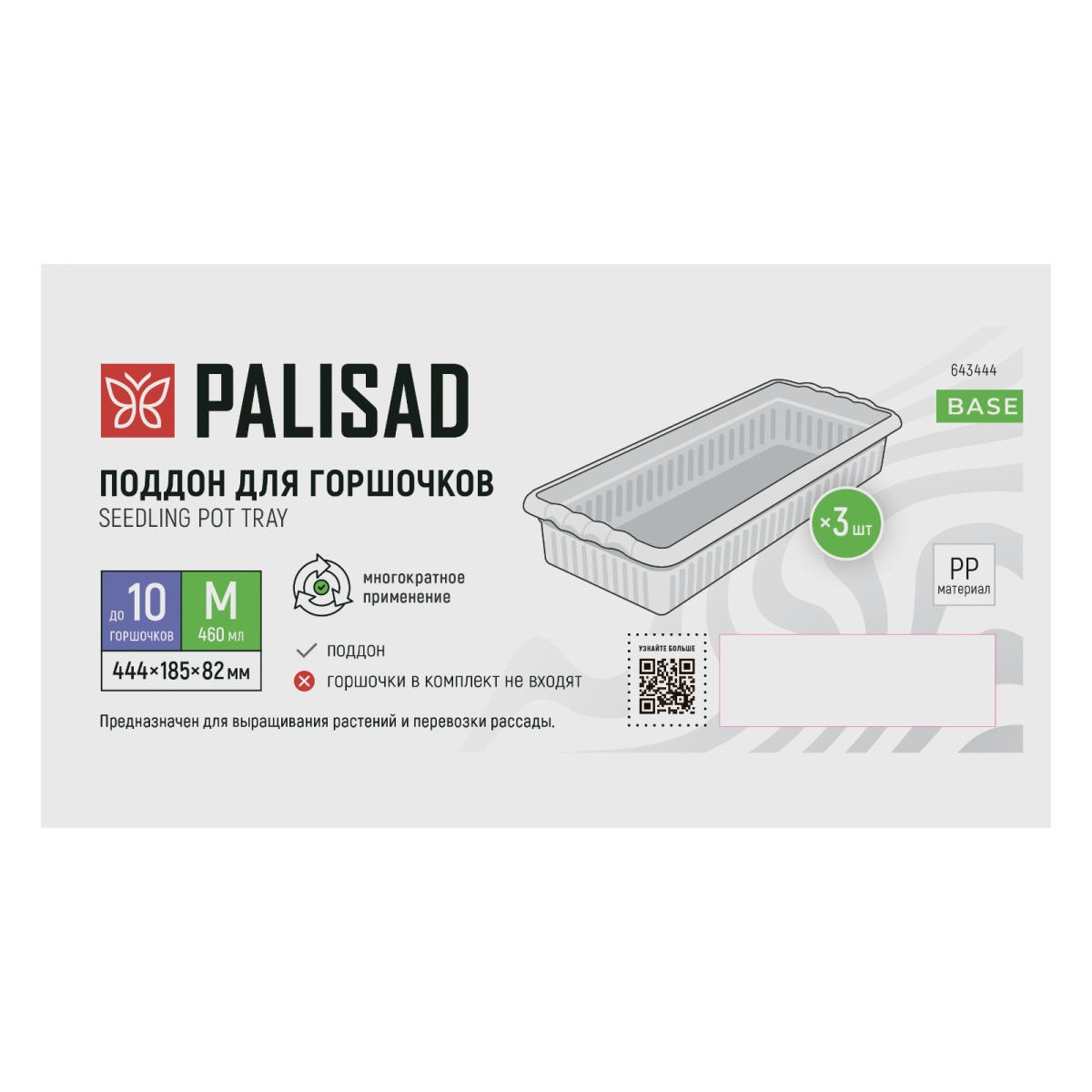 Купить Поддон для рассады 444х185х82 мм, пластиковый, 3 шт, под 10 горшочков 460 мл. Palisad V5696 по лучшей цене с доставкой - интернет магазин №1 в России