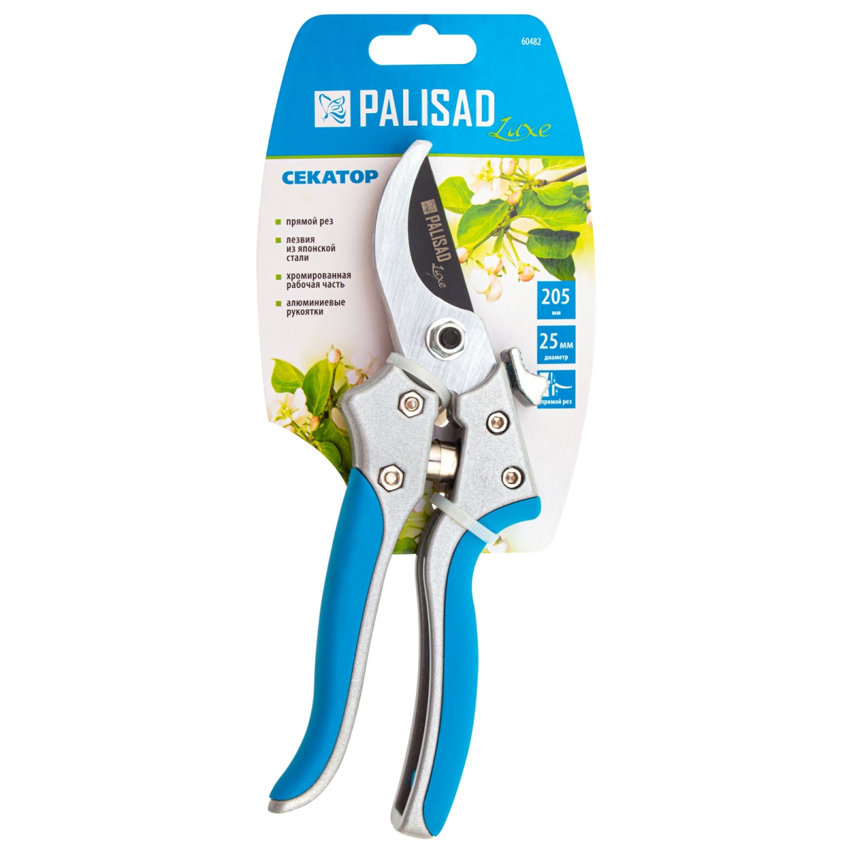 Секатор прямого реза, 205 мм, металлические обрезиненные рукоятки, Luxe, Palisad