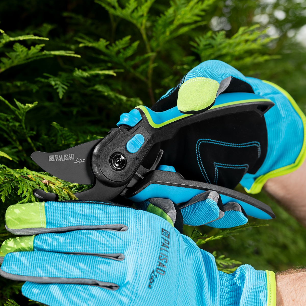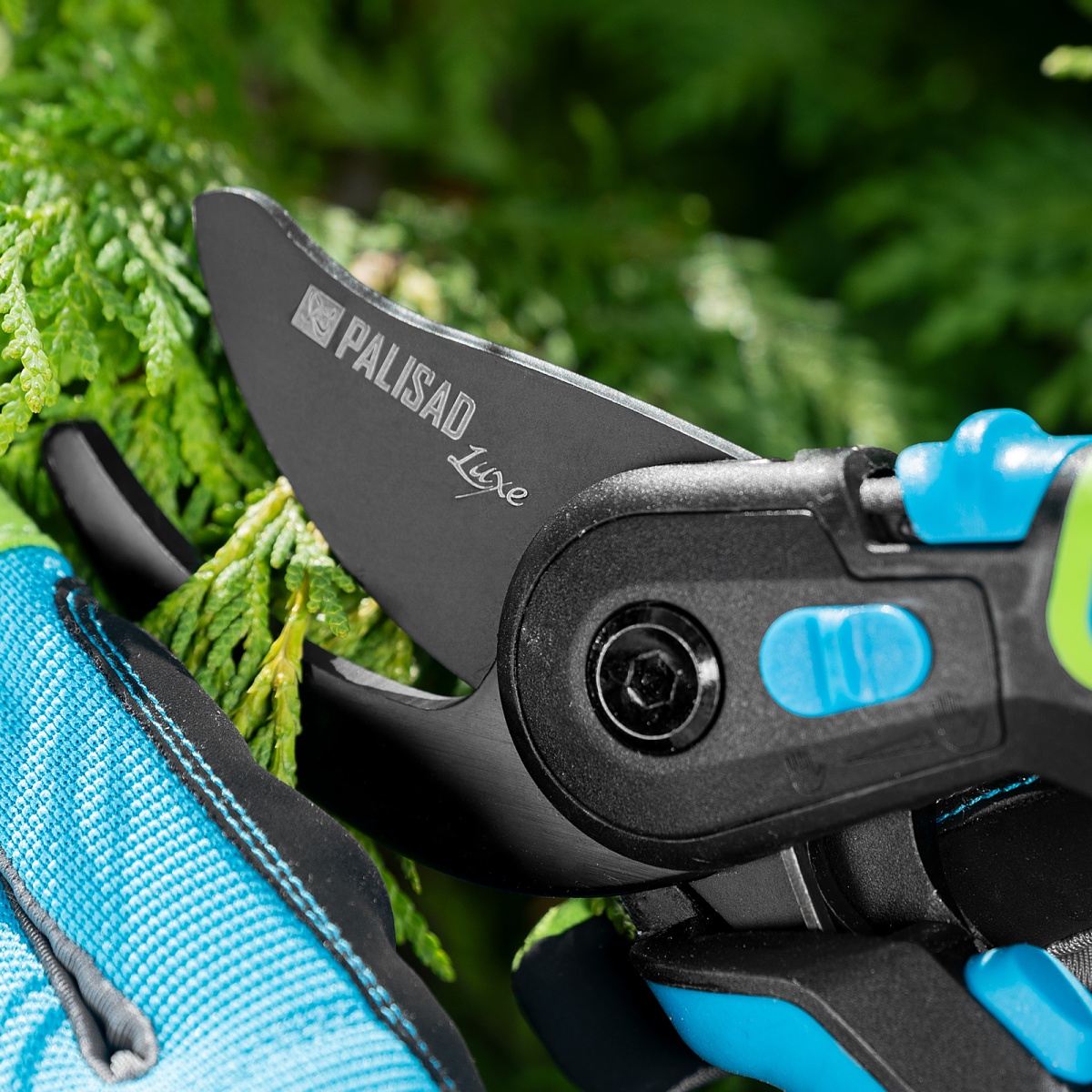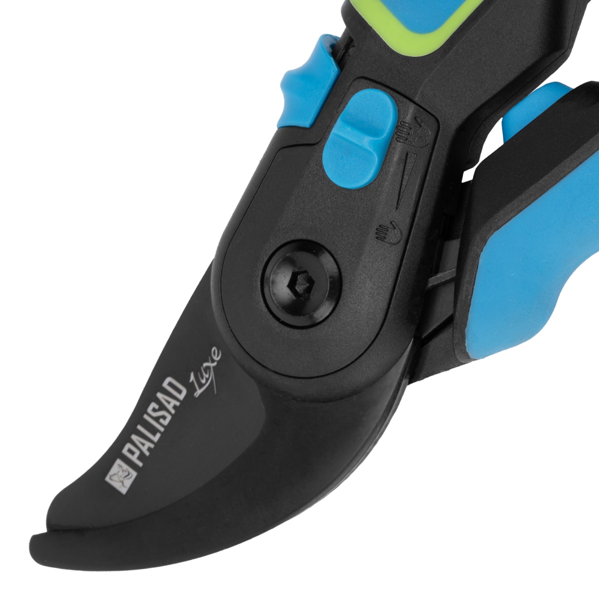 Наличие клапана для сброса давления Секатор прямого реза, 225 мм, регулировка захвата, трехкомпонентные рукоятки, Luxe, Palisad