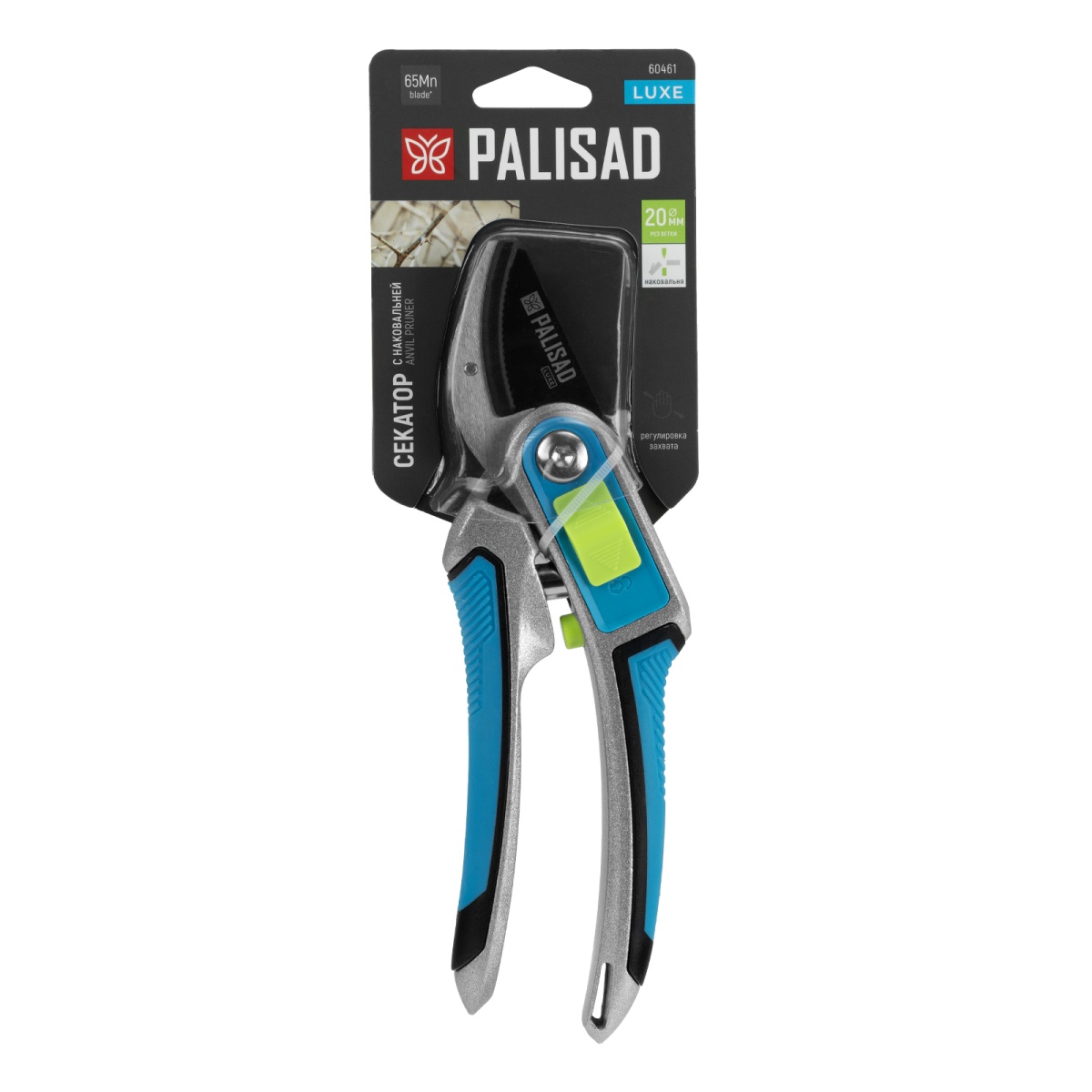 Секатор с наковальней, 215 мм, регулировка захвата, трехкомпонентные рукоятки, LUXE Palisad