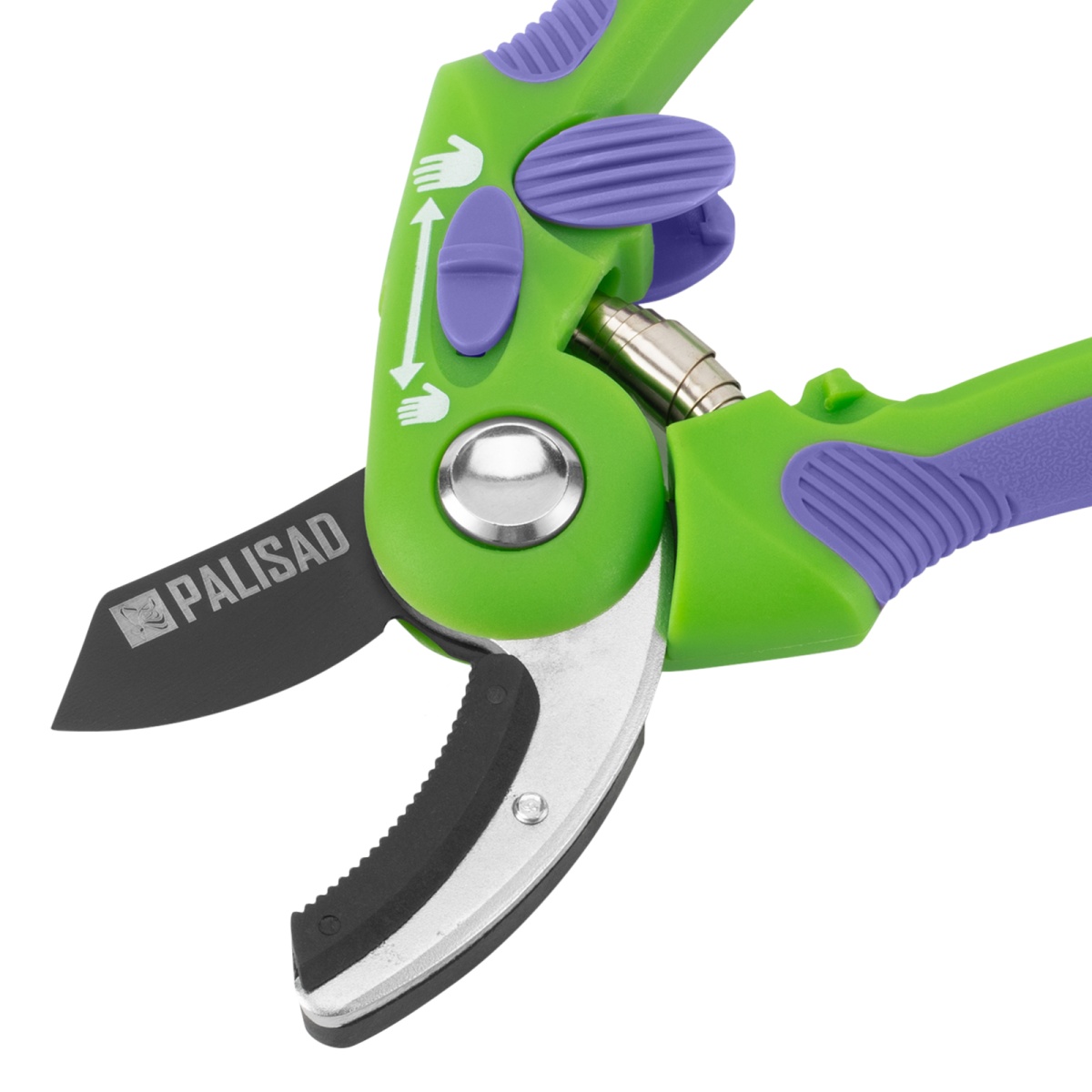 Секатор с наковальней, 215 мм, регулировка захвата, двухкомпонентные рукоятки, Palisad