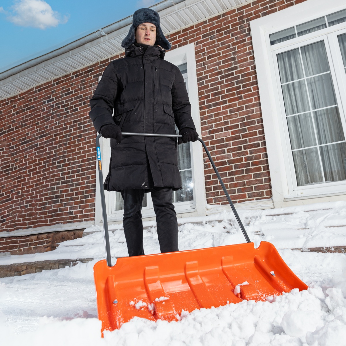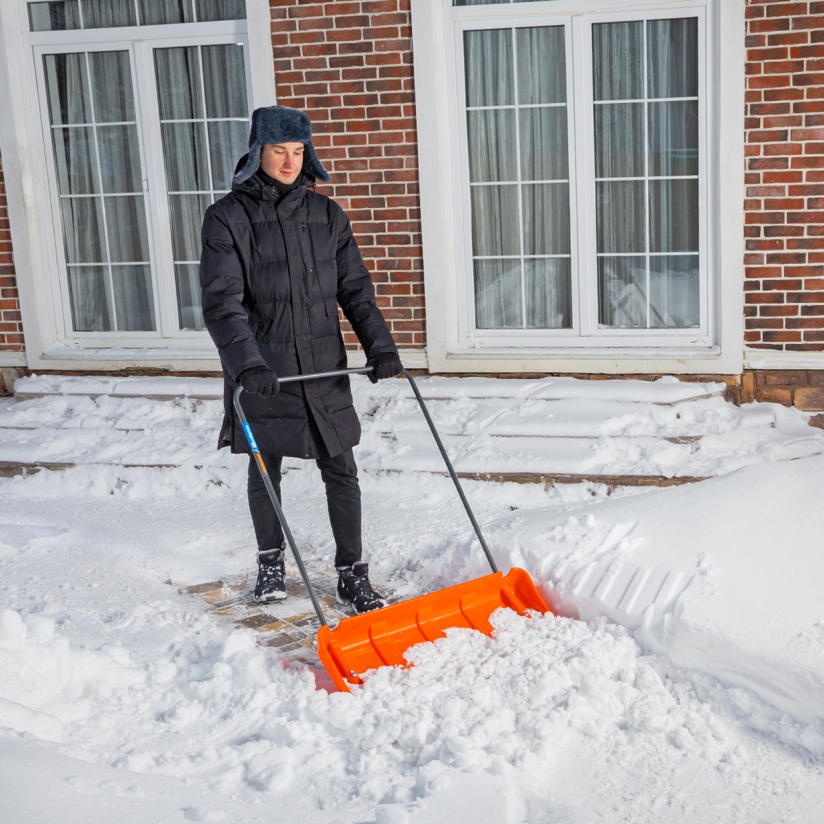 Движок для уборки снега пластиковый, 795х435х1280 мм, стальная рукоятка, усиленный Сибртех