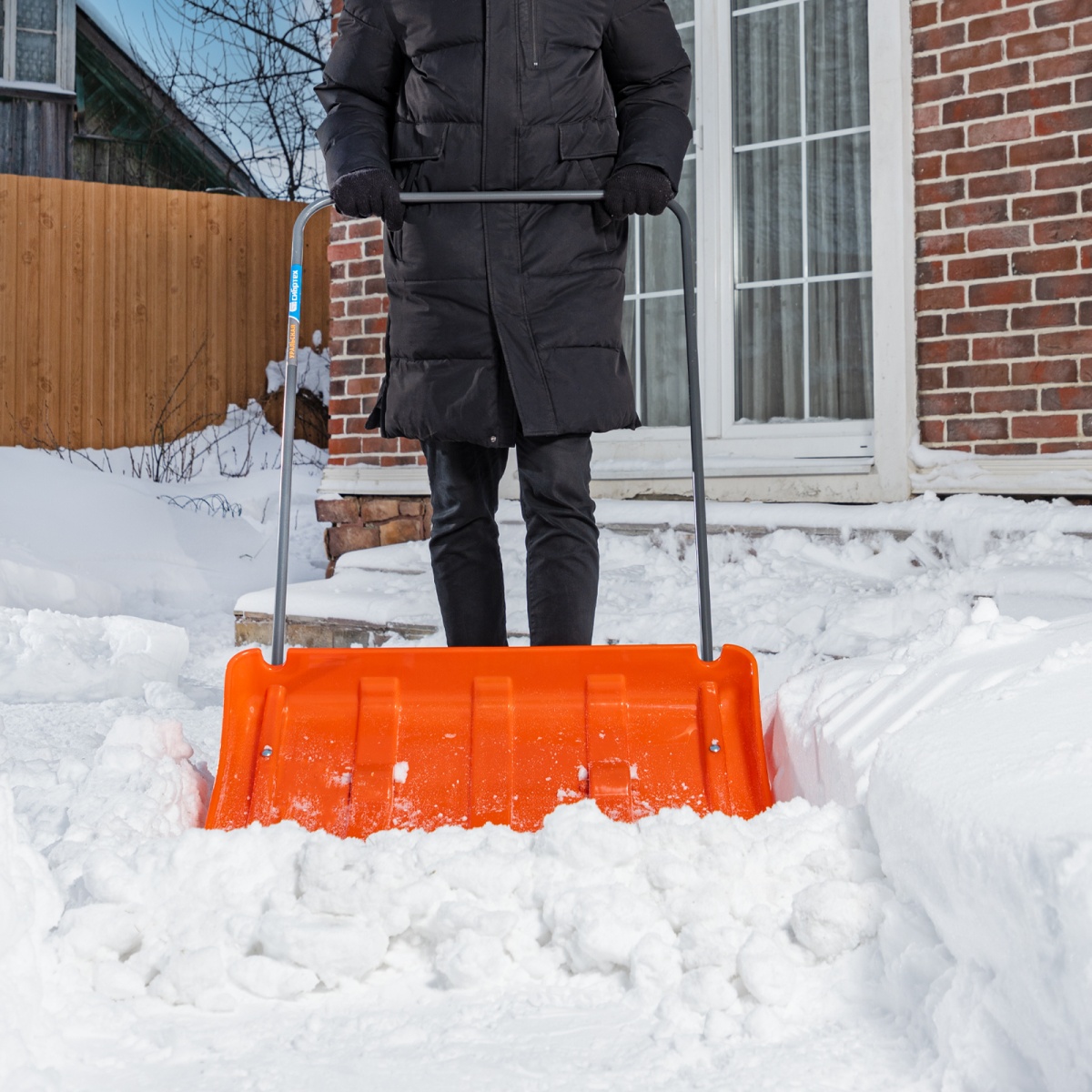 Купить Движок для уборки снега пластиковый, 795х435х1280 мм, стальная рукоятка, усиленный Сибртех V1571 по лучшей цене с доставкой - интернет магазин №1 в России