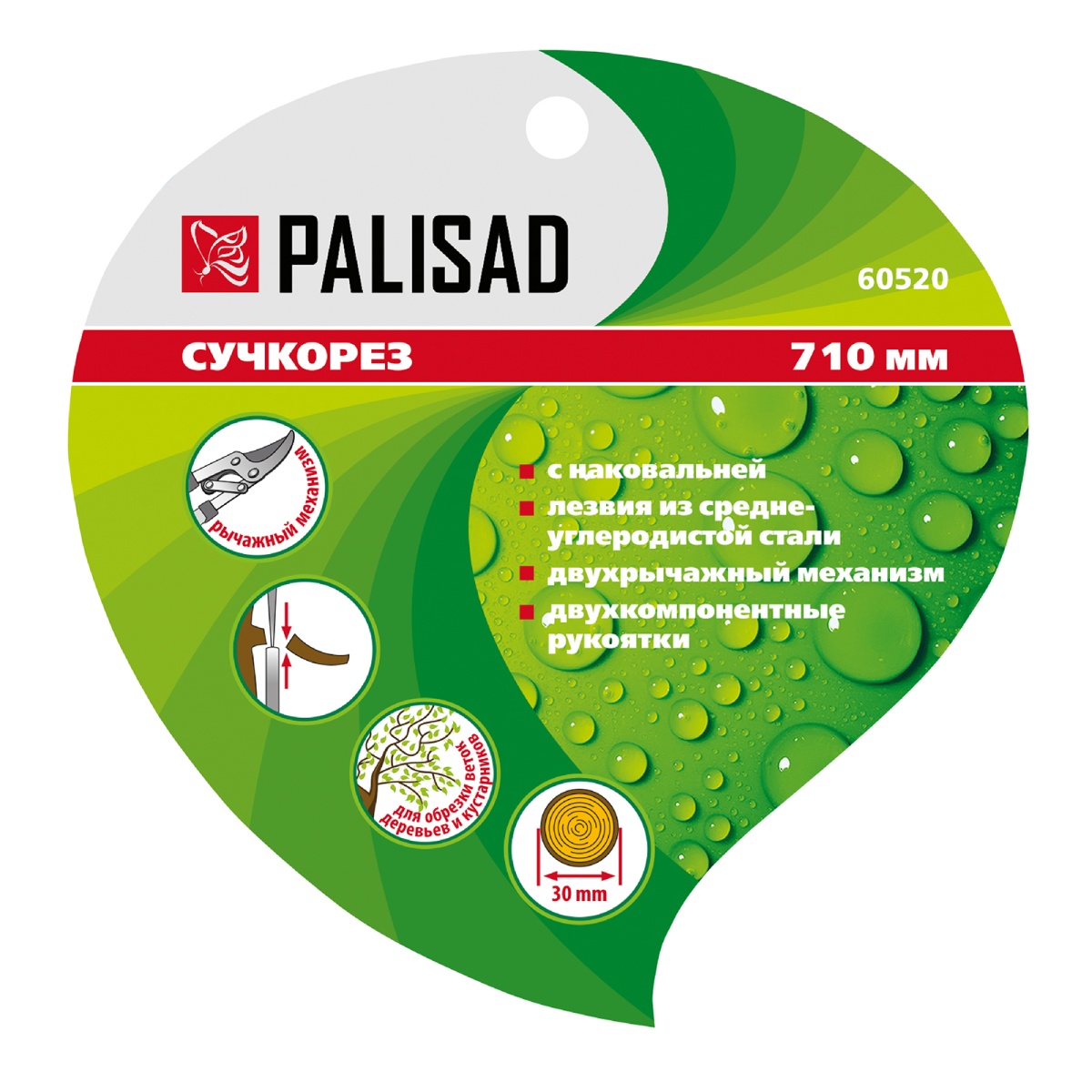Наличие клапана для сброса давления Сучкорез с наковальней, 710 мм, двухрычажный механизм, двухкомпонентные рукоятки, Palisad
