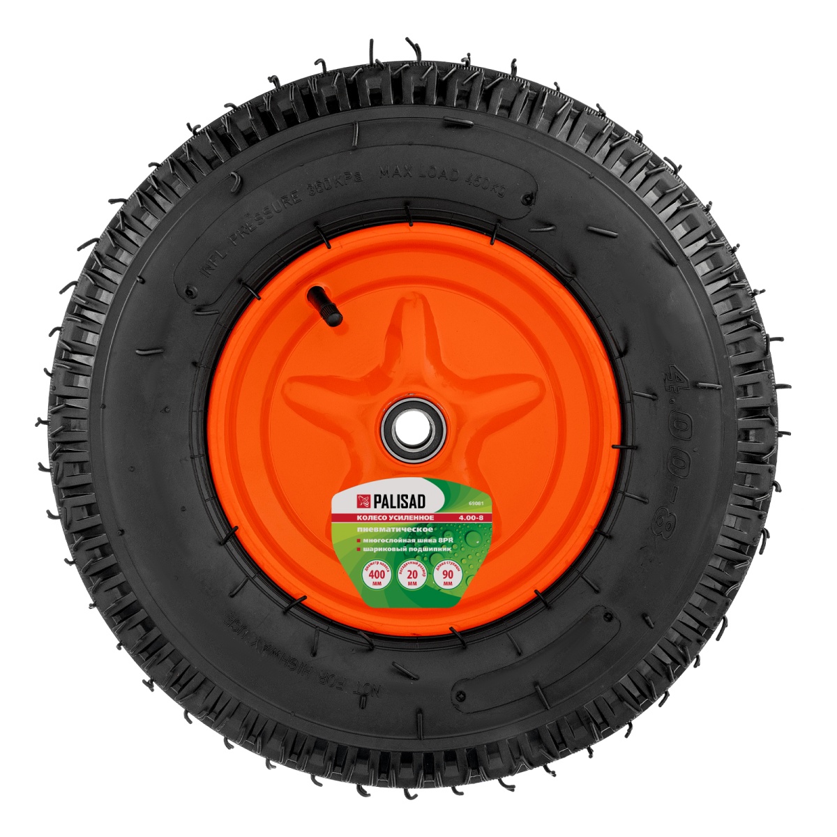 Купить Колесо пневматическое усиленное, шина 8PR, 4.00-8 D400 мм, внутренний диаметр подшипника 20 мм, длина оси 90 мм Palisad V2718 по лучшей цене с доставкой - интернет магазин №1 в России