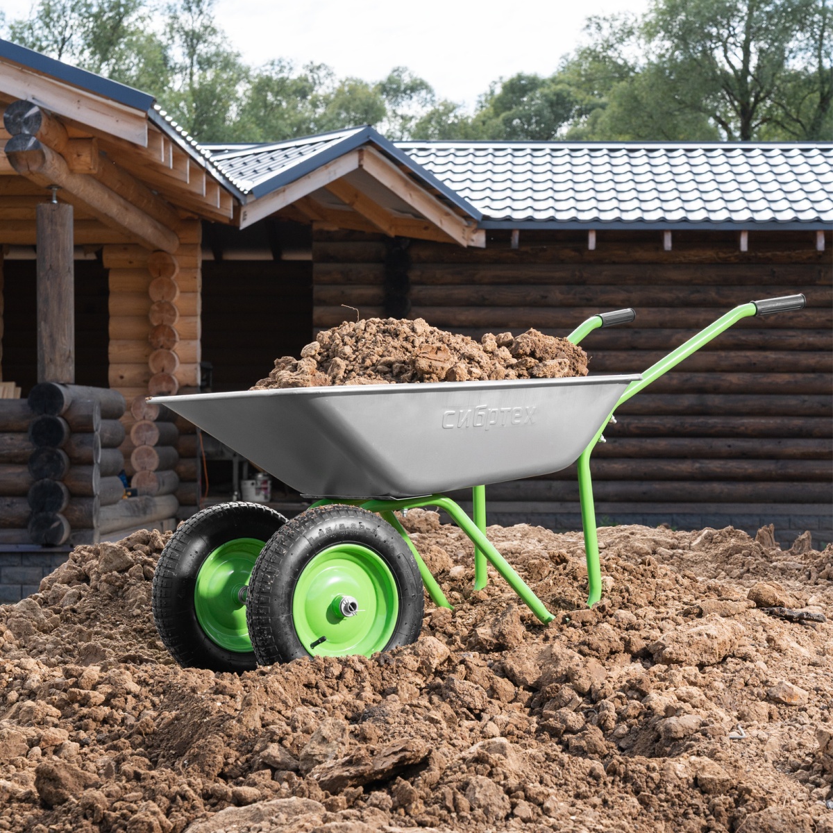 Купить Тачка садовая, 2-х колесная, грузоподъемность 120 кг, объем 65 л Сибртех V7055 по лучшей цене с доставкой - интернет магазин №1 в России