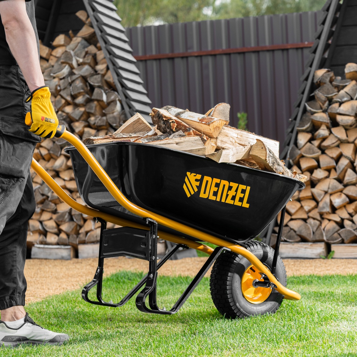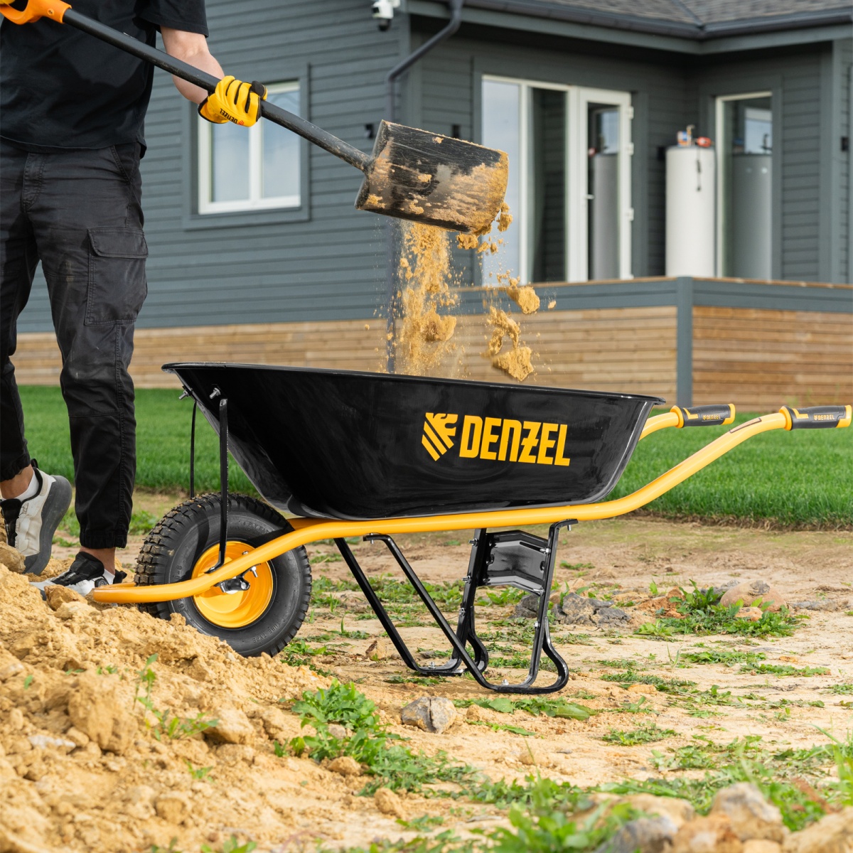 Купить Тачка строительная, усиленная, объем 130 л, 230 кг, колесо 15х6.00-6 Denzel V7064 по лучшей цене с доставкой - интернет магазин №1 в России
