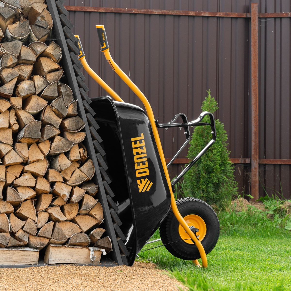 Наличие клапана для сброса давления Тачка строительная, усиленная, объем 130 л, 230 кг, колесо 15х6.00-6 Denzel