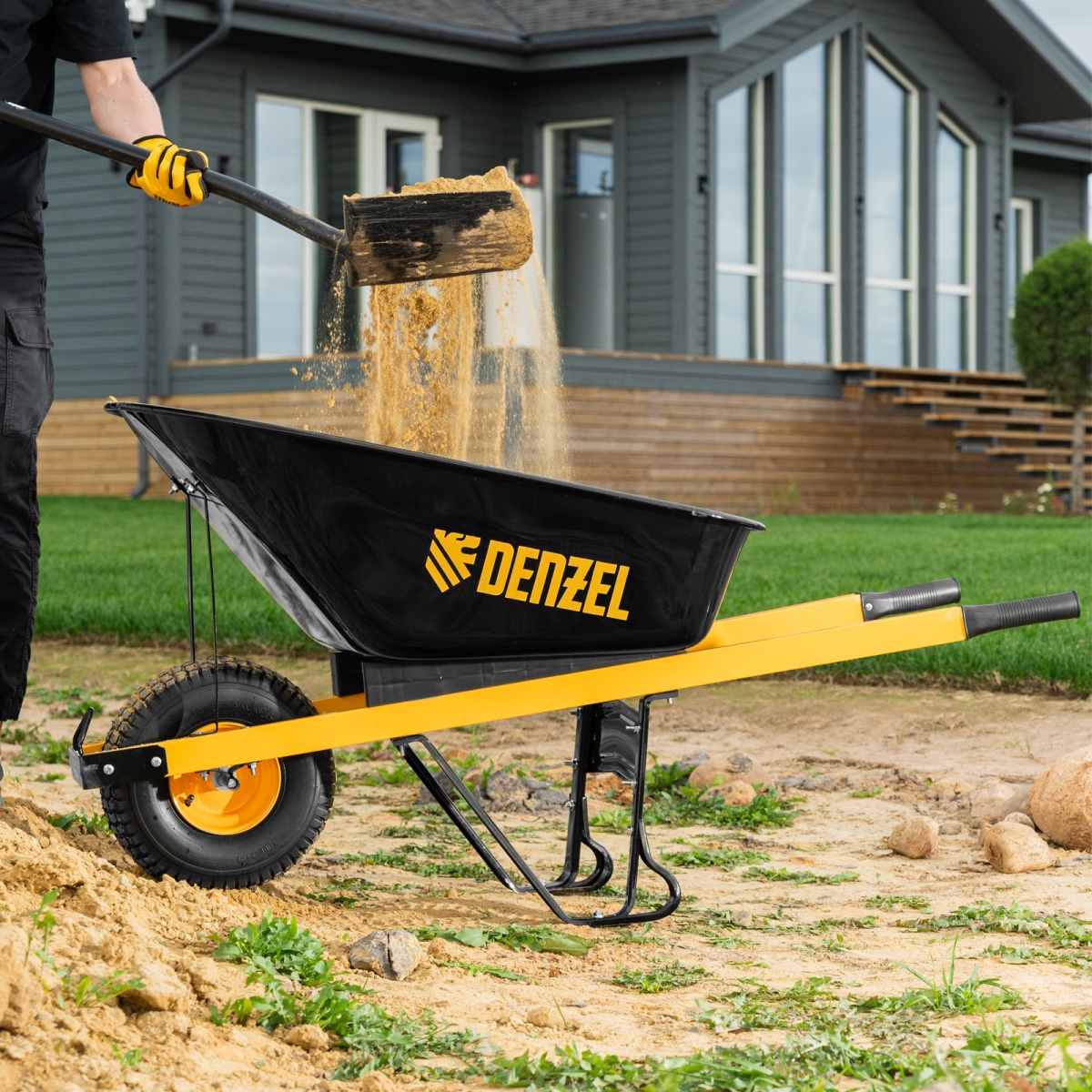 Купить Тачка строительная, усиленная, объем 140 л, 230 кг, колесо 15х6.00-6 Denzel V7065 по лучшей цене с доставкой - интернет магазин №1 в России