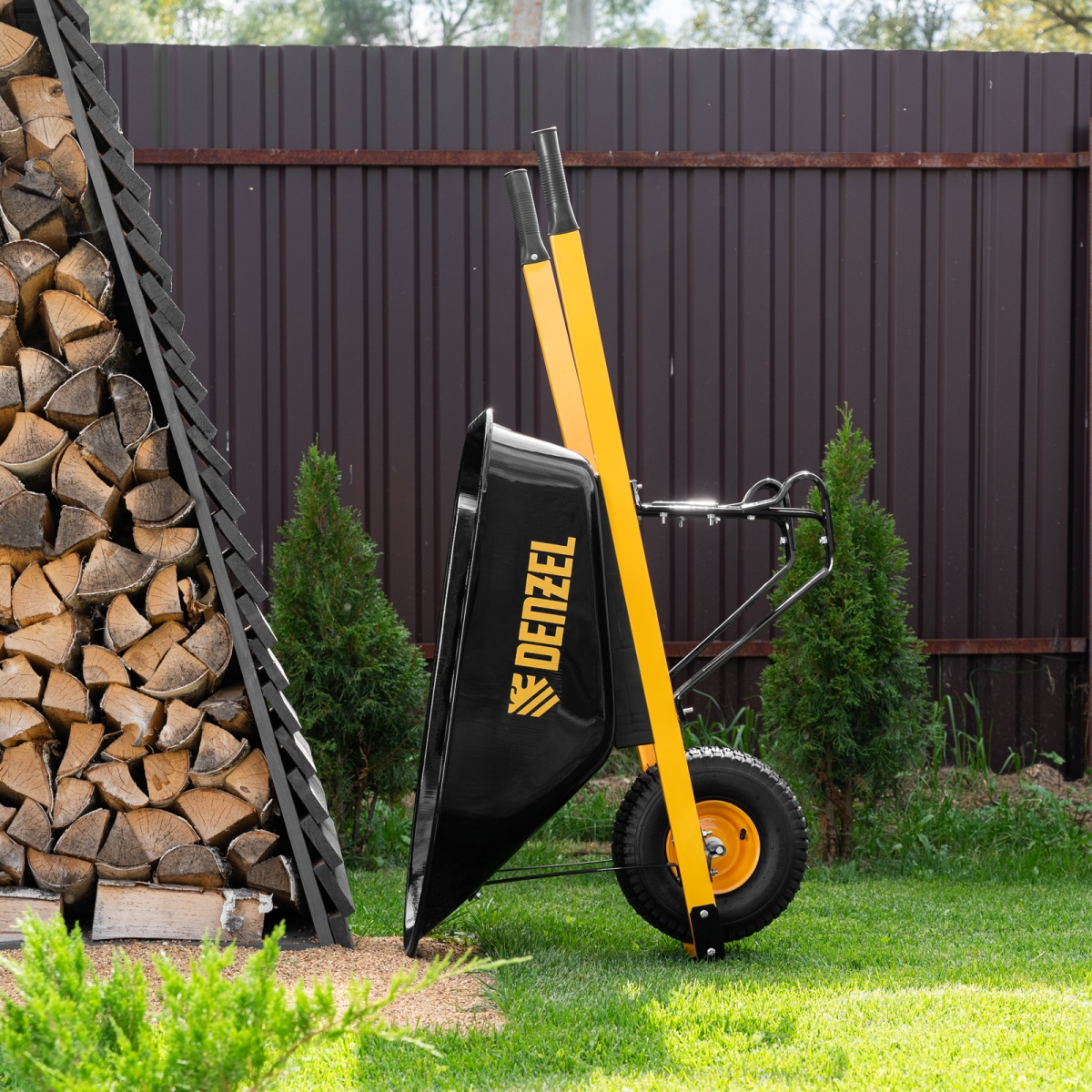 Наличие клапана для сброса давления Тачка строительная, усиленная, объем 140 л, 230 кг, колесо 15х6.00-6 Denzel