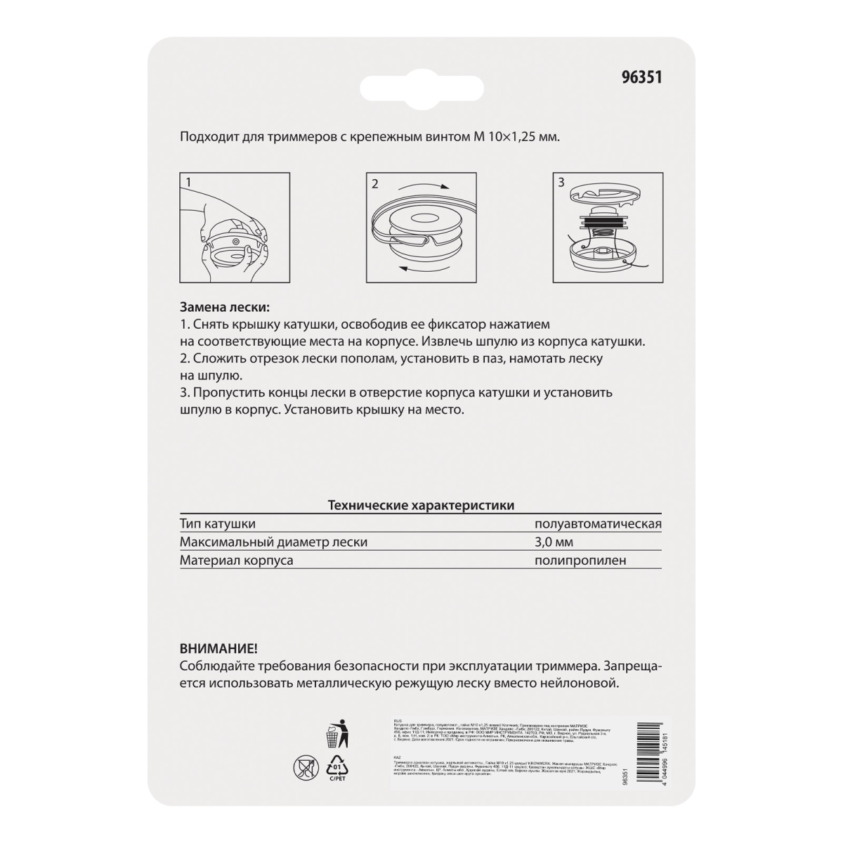 Купить Катушка для триммера, полуавтомат., гайка М10 х1,25 левая Kronwerk V1987 по лучшей цене с доставкой - интернет магазин №1 в России
