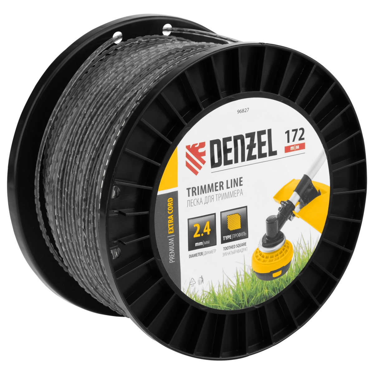 Купить Леска для триммера двухкомпонентная зубчатый квадрат, 2,4мм х 172м, на DIN кат. EXTRA CORD Denzel V3542 по лучшей цене с доставкой - интернет магазин №1 в России