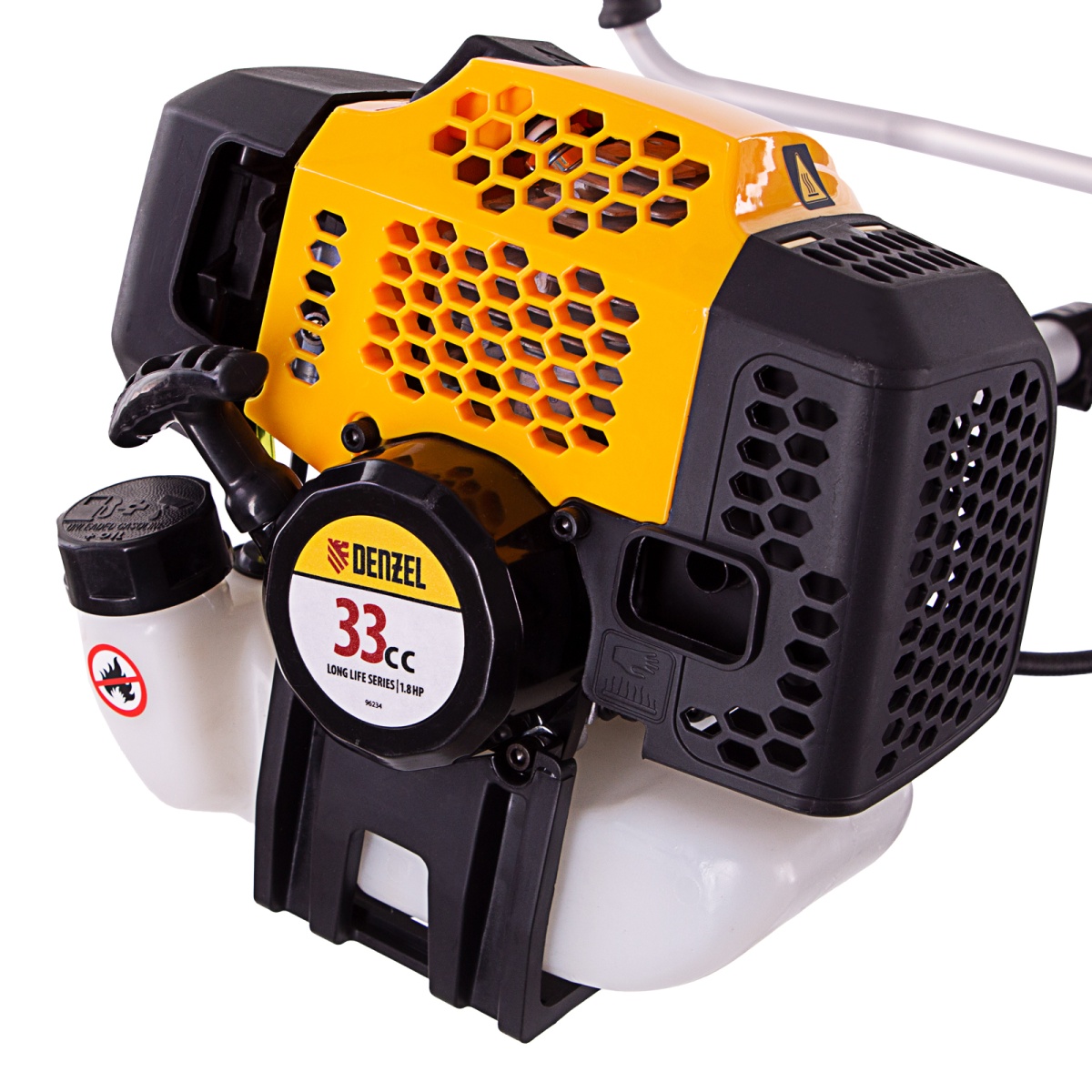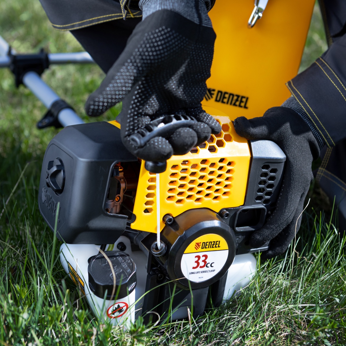 Наличие клапана для сброса давления Триммер бензиновый DGT 330, 33 см3, 1.8 л. с, неразъемная штанга, состоит из 2 частей Denzel