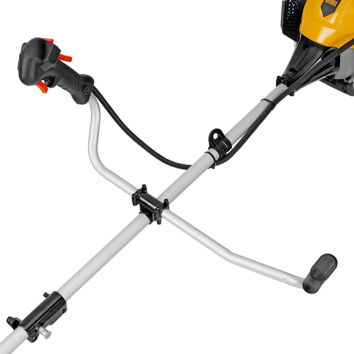 Наличие клапана для сброса давления Триммер бензиновый DGT 430S, 43 см3, 2.5 л. с, разъемная штанга, состоит из 2 частей Denzel