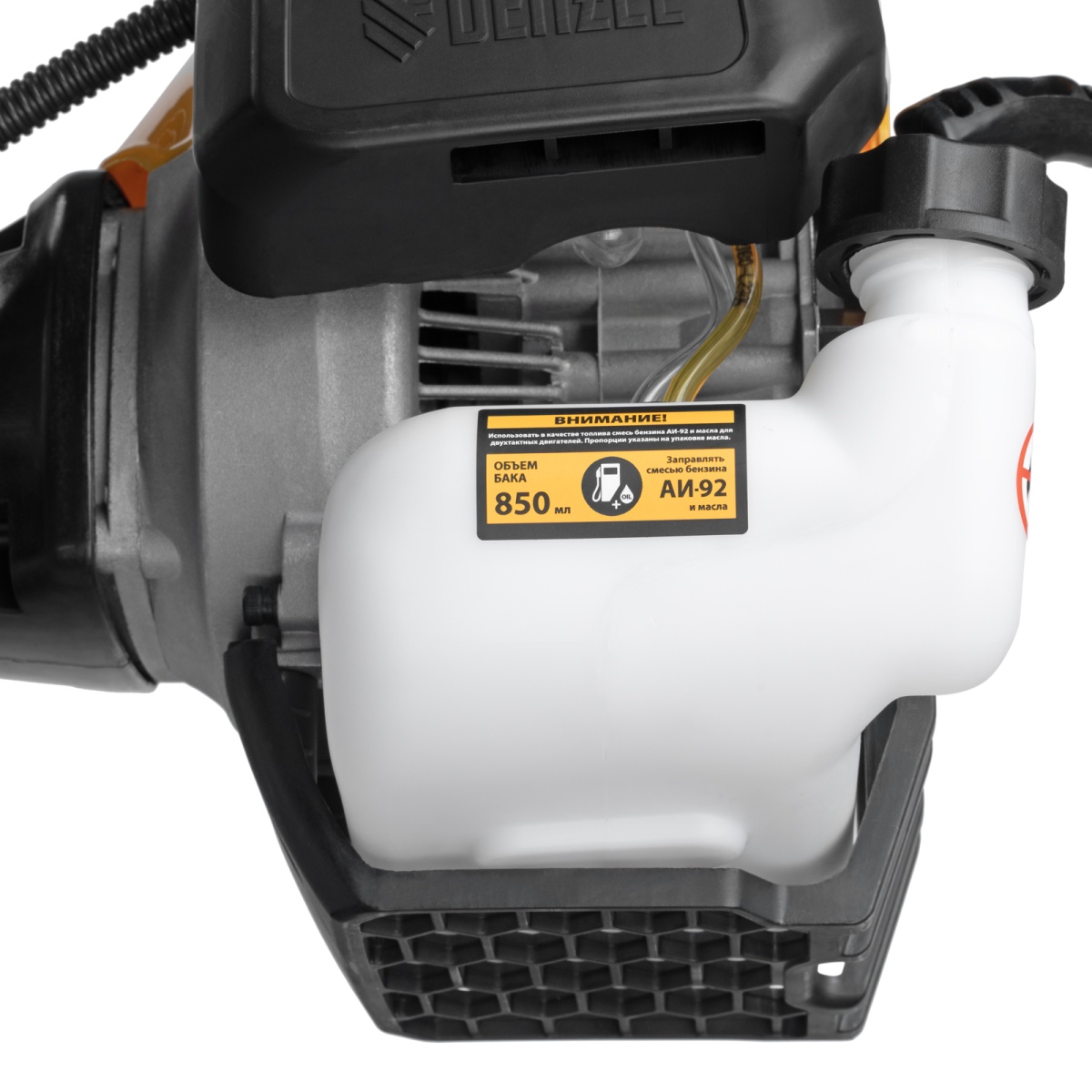 Наличие клапана для сброса давления Триммер бензиновый DGT-52-PRO, анти-вибро, 52 см3, неразъем, состоит из 2 частей Denzel