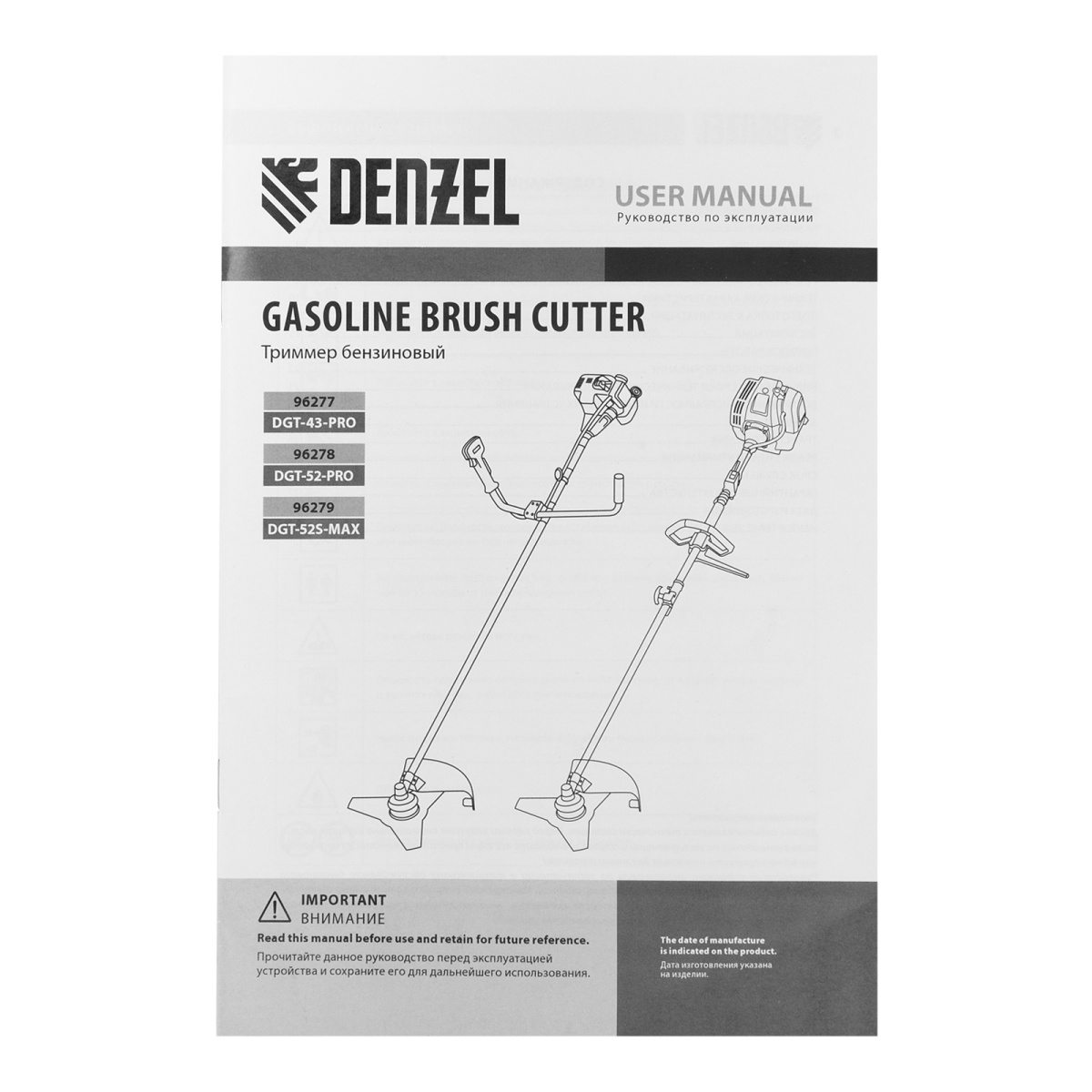 Купить Триммер бензиновый DGT-52-PRO, анти-вибро, 52 см3, неразъем, состоит из 2 частей Denzel V7255 по лучшей цене с доставкой - интернет магазин №1 в России