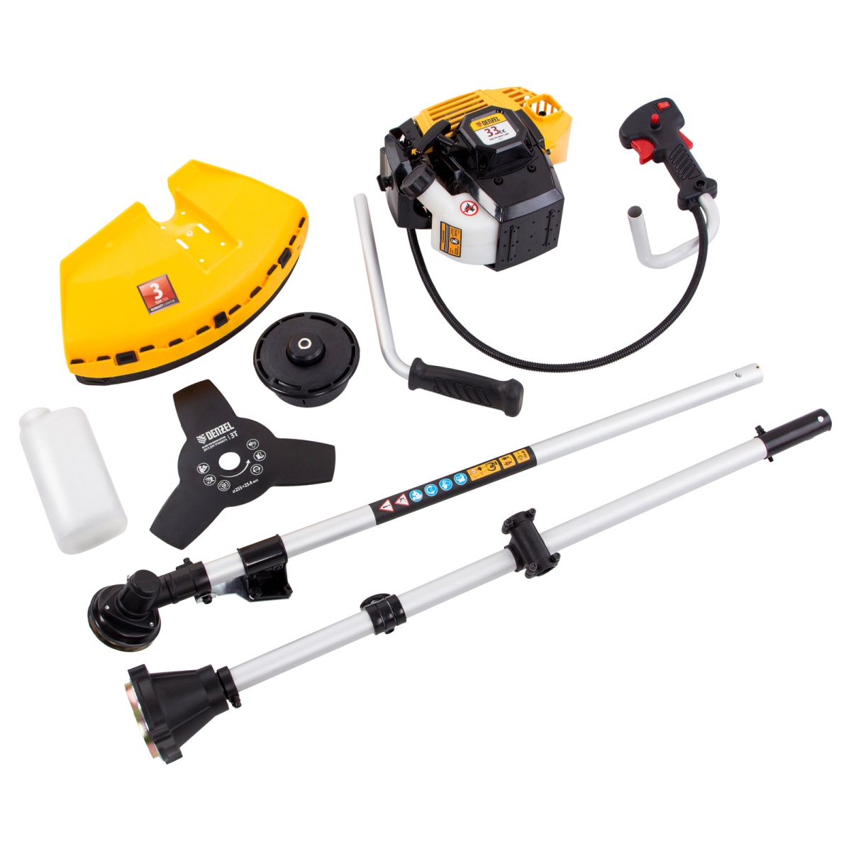 Триммер бензиновый DR-33S, 33 см3, разъемная штанга, состоит из 2 частей Denzel
