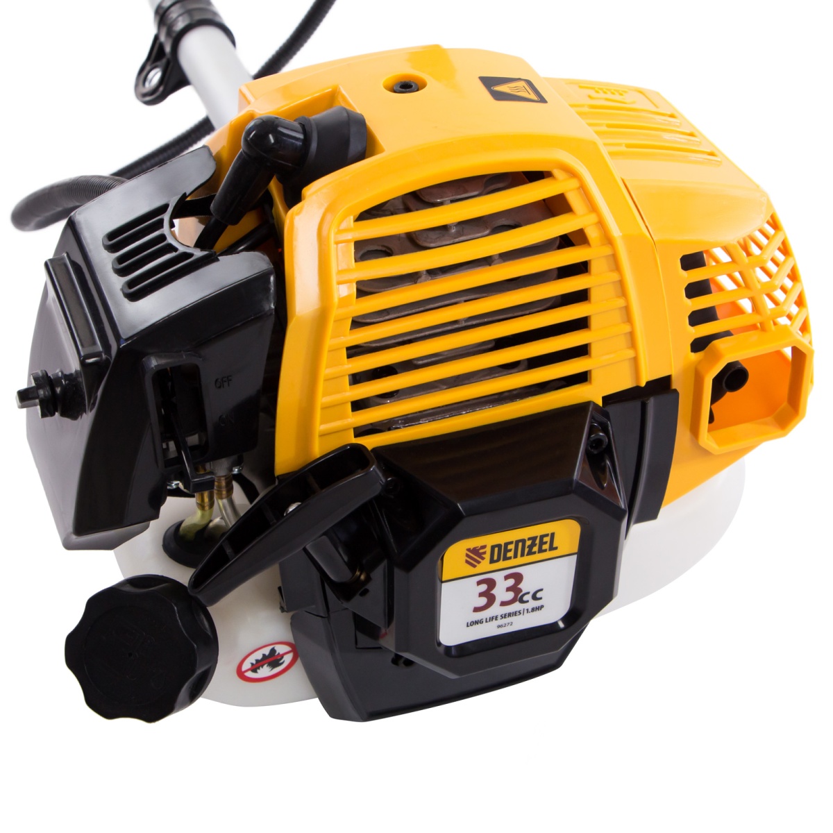 Наличие клапана для сброса давления Триммер бензиновый DR-33S, 33 см3, разъемная штанга, состоит из 2 частей Denzel