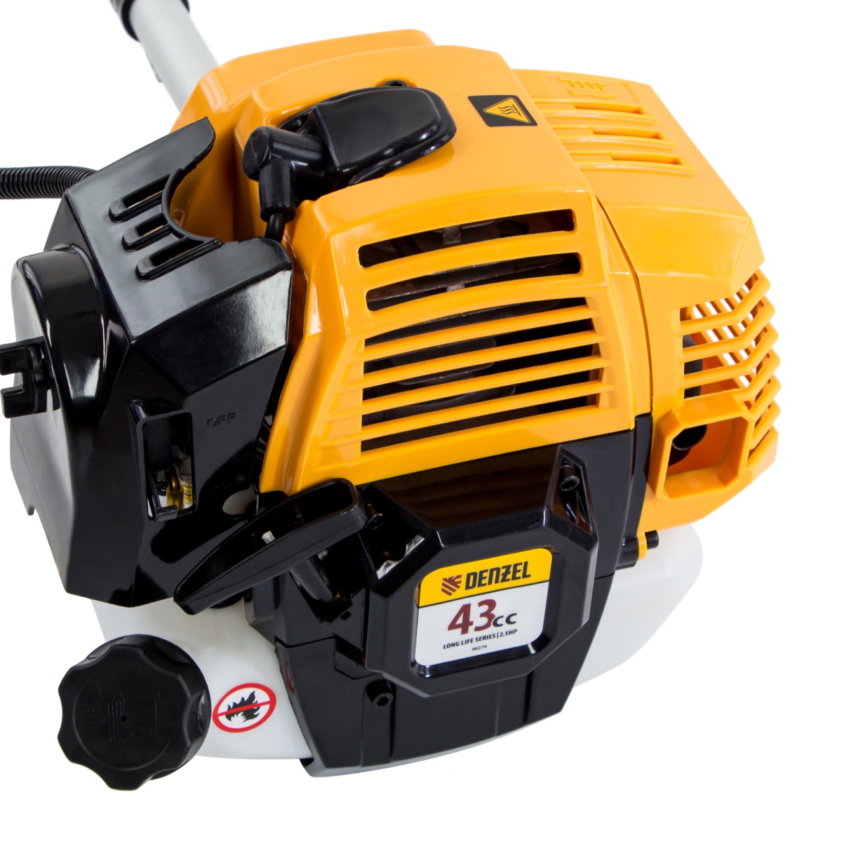 Наличие клапана для сброса давления Триммер бензиновый DR-43S, 43 см3, разъемная штанга, состоит из 2 частей Denzel