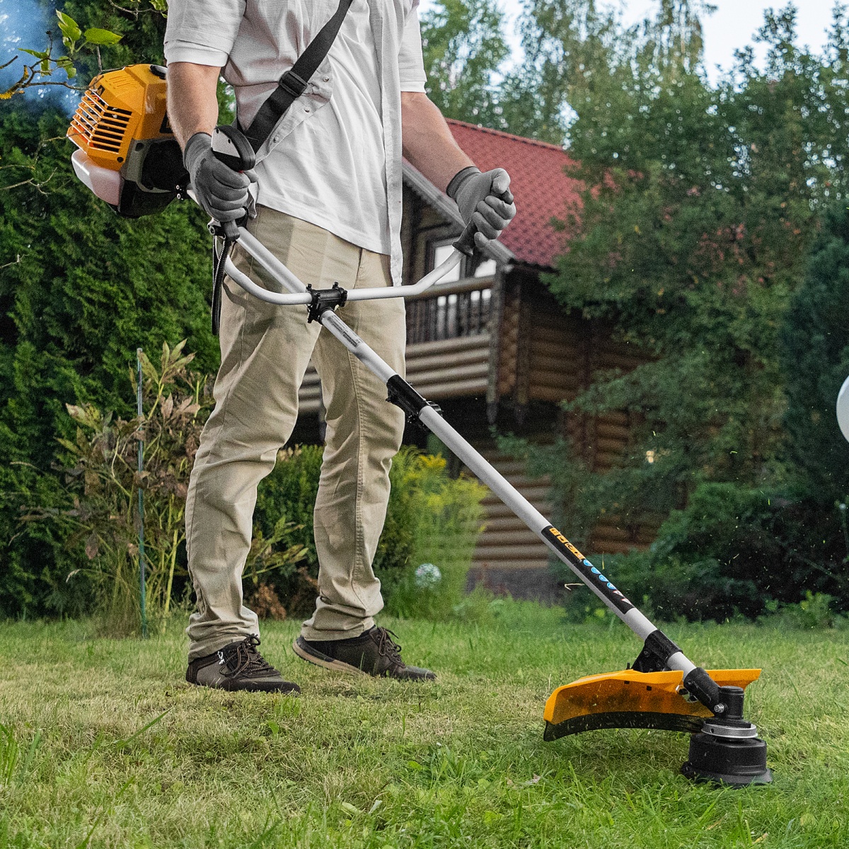 Триммер бензиновый DR-43S, 43 см3, разъемная штанга, состоит из 2 частей Denzel