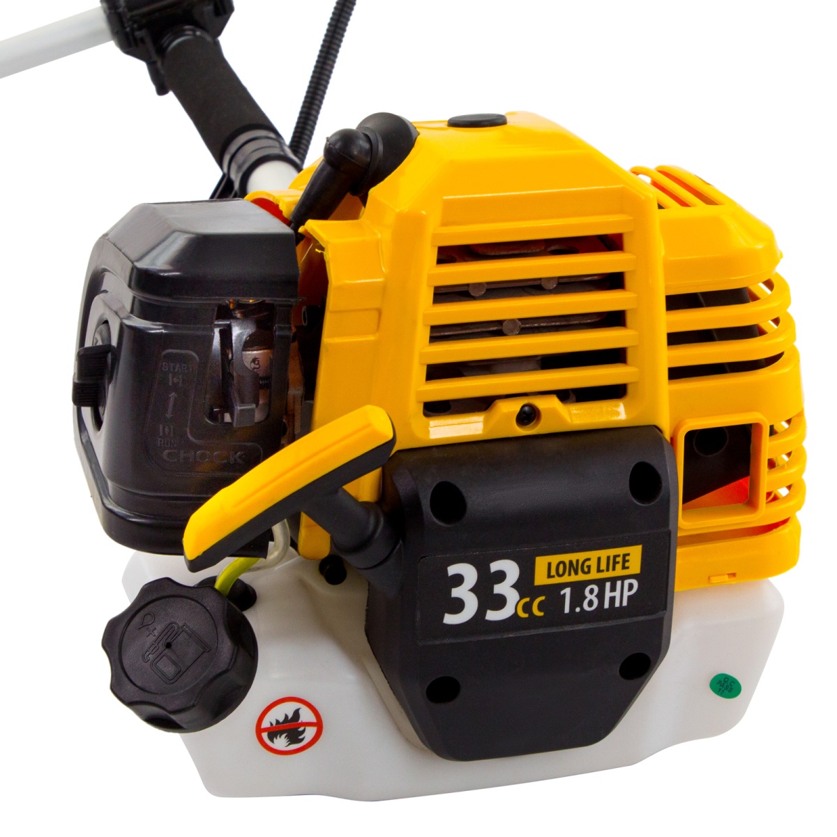Наличие клапана для сброса давления Триммер бензиновый DT 33S, 33 см3, 1.8 л. с, разъемная штанга, состоит из 2 частей Denzel