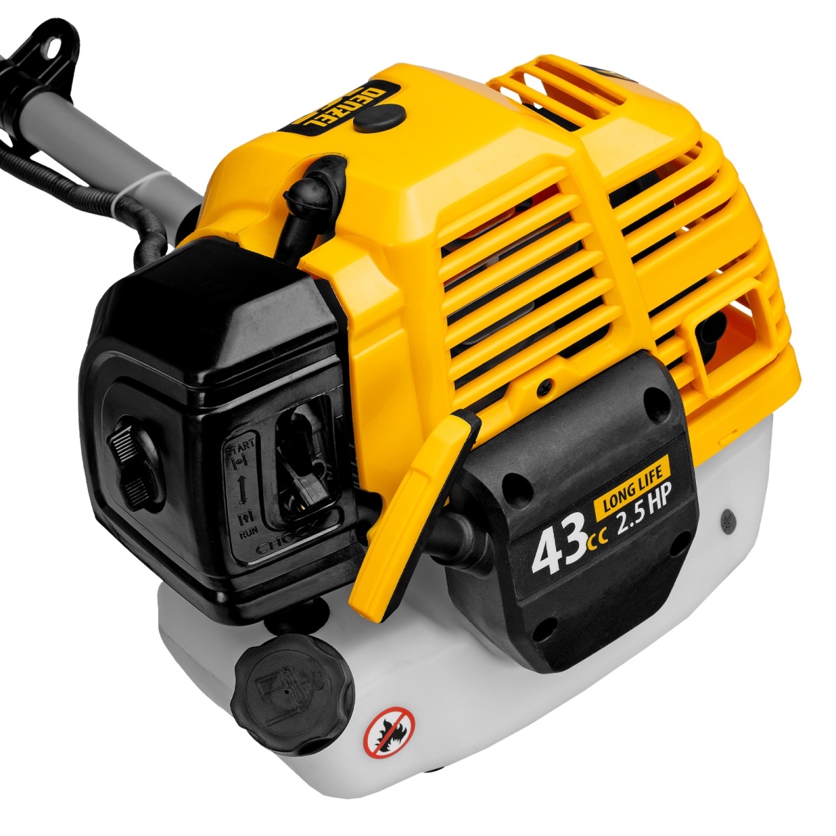 Наличие клапана для сброса давления Триммер бензиновый DT 43S, 43 см3, 2.5 л. с, разъемная штанга, состоит из 2 частей Denzel