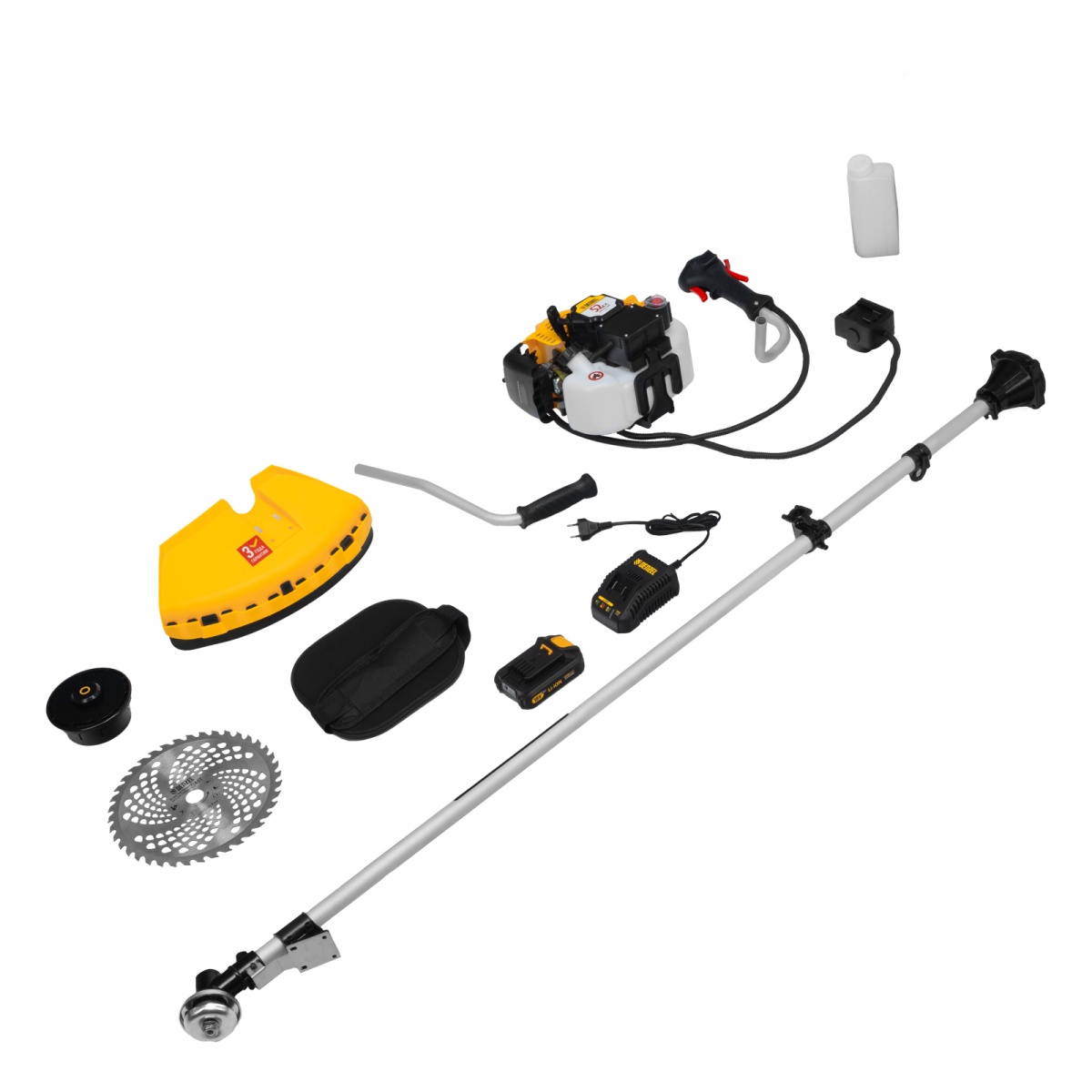 Купить Триммер бензиновый DT-52E, 52 см3, неразъемная штанга, электростартер, состоит из 2 частей Denzel V7267 по лучшей цене с доставкой - интернет магазин №1 в России