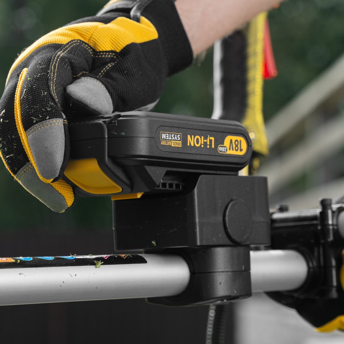 Триммер бензиновый DT-52E, 52 см3, неразъемная штанга, электростартер, состоит из 2 частей Denzel