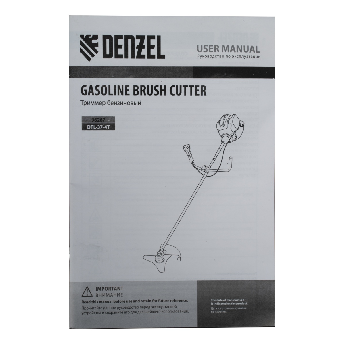 Купить Триммер бензиновый DTL-37-4T, 4-тактный, 37 см3, неразъемная штанга, состоит из 2 частей Denzel V7269 по лучшей цене с доставкой - интернет магазин №1 в России